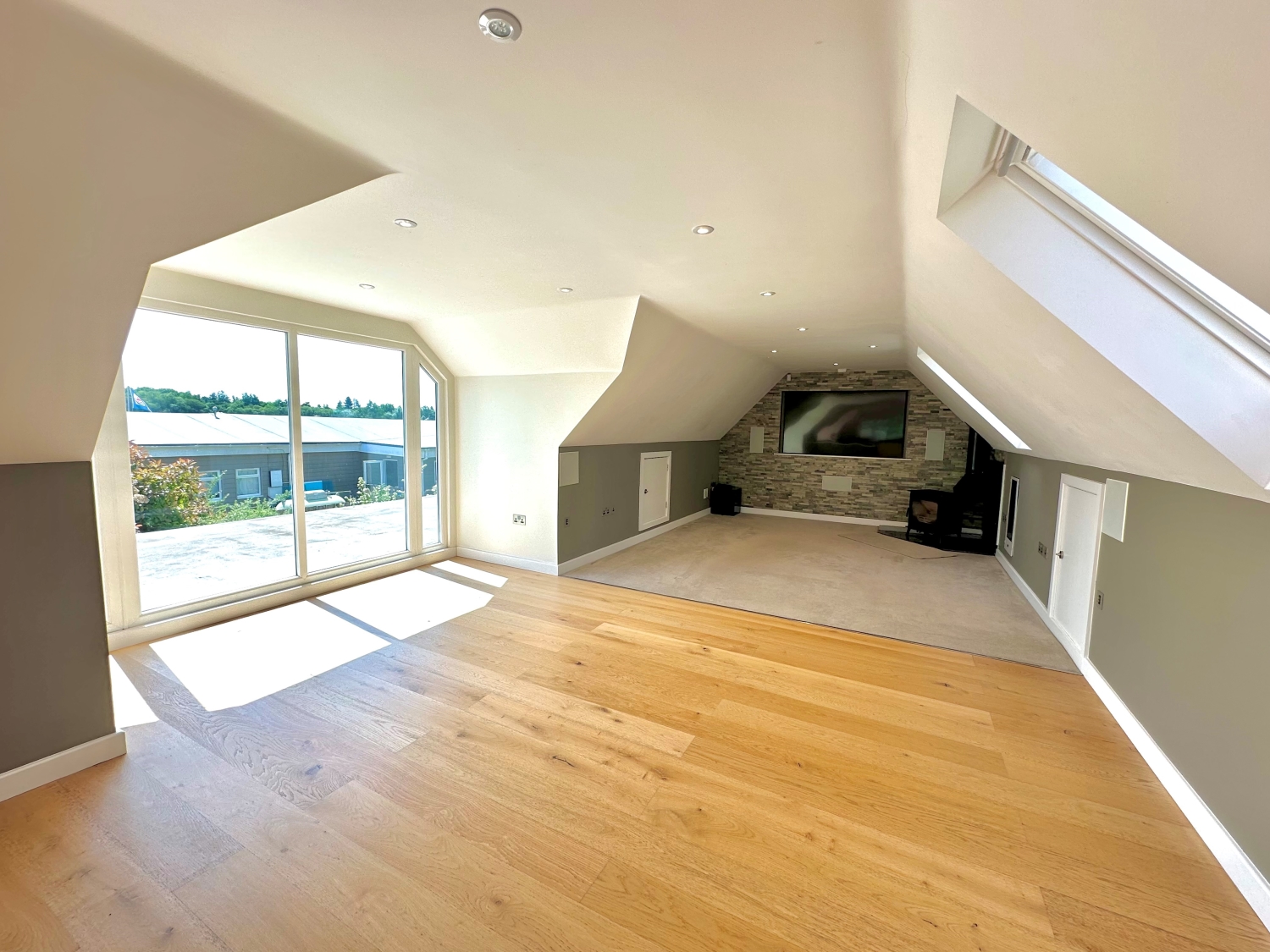 Cladded ancillary accommodation with under floor heating throughout. Play room to one end, with a sink, speaker system and french doors to a patio area. Games room in the centre with a bar, TV and speaker system again french doors. Plant and store room to the other end. Outdoor shower and EV charging unit.