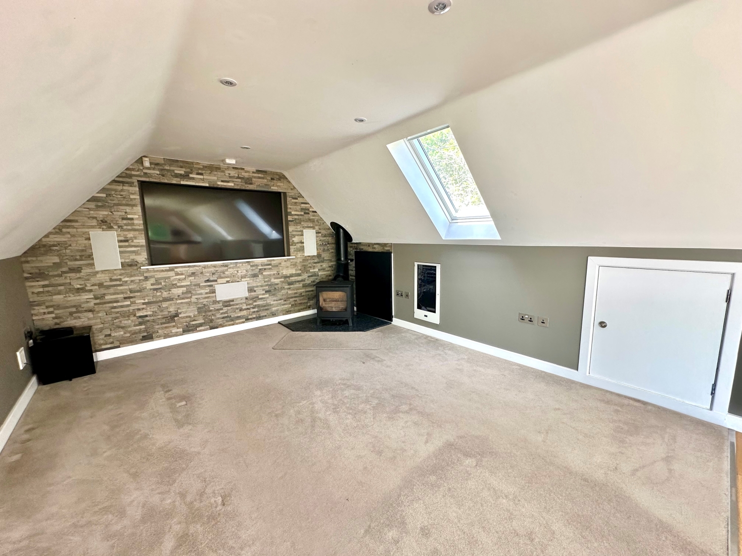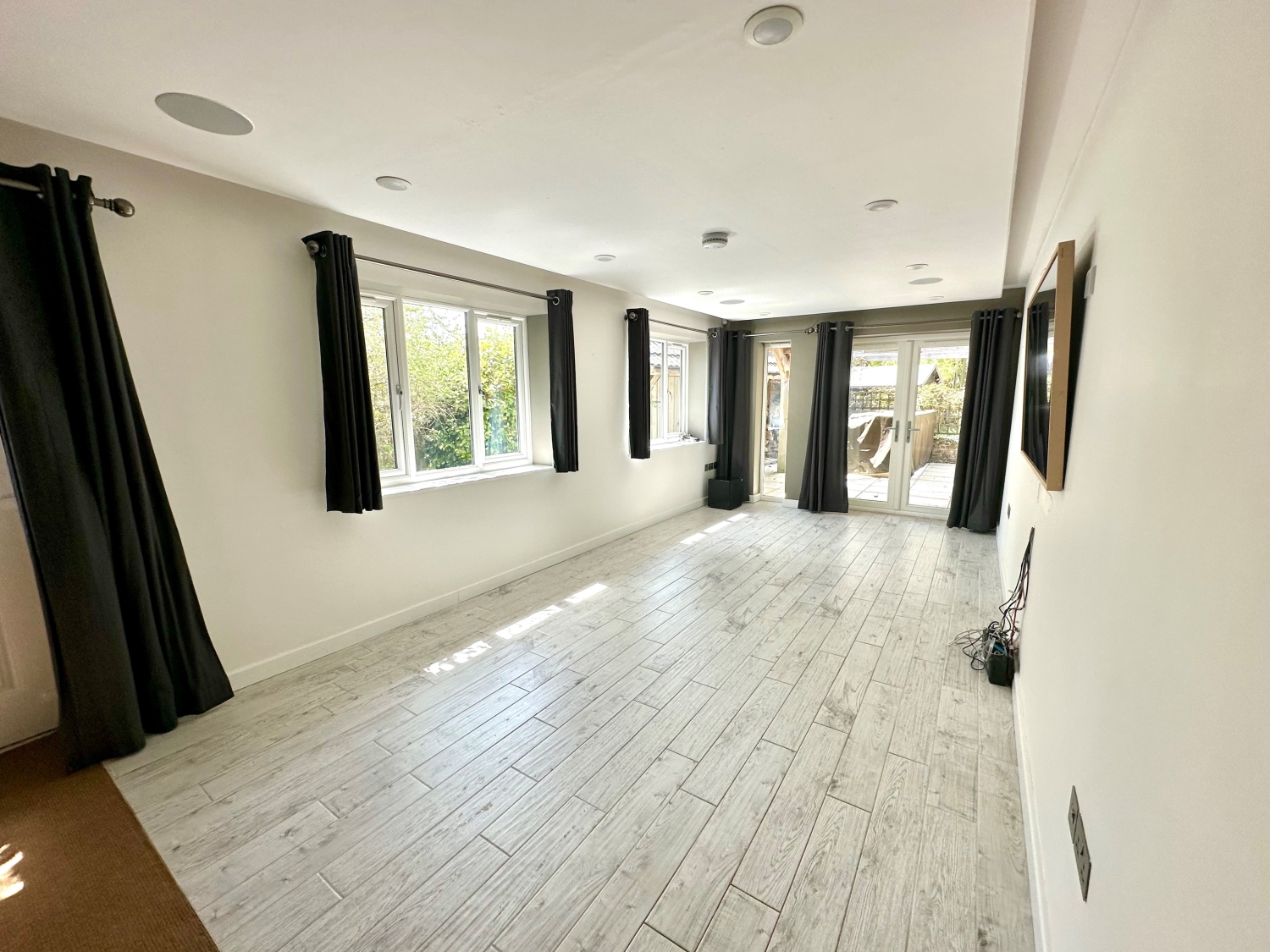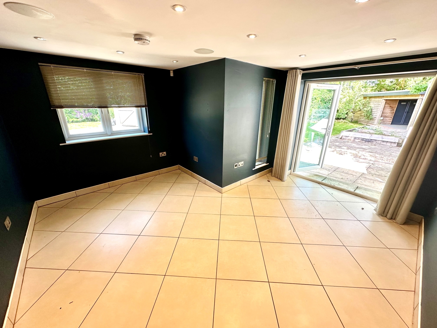 To the ground floor is a dual aspect garden room with french doors to the terrace. TV and surround sound speaker system.