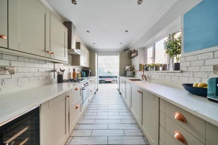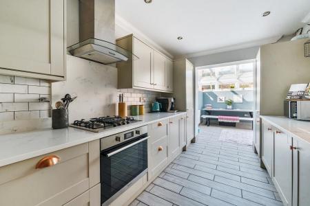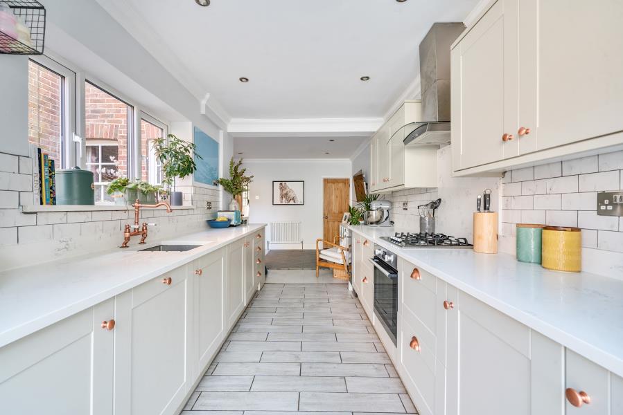 Unfurnished. A beautifully presented three bedroom house set in the heart of Ripley Village. The property is accessed via a private gate and enters into a beautiful light and airy reception room with a feature fireplace and tiled hearth. A door leads through to the dining room and modern kitchen with high end integrated appliances with a downstairs cloakroom and lovely light conservatory. Upstairs comprises three beautifully decorated bedrooms together with a modern family bathroom. Outside to the front is a small front garden and the rear garden is separated into two distinct areas with a secluded patio garden accessed directly from the conservatory. A path leads to the rear garden with a generous shed and a gate providing access to the off street parking. The property is minutes from the centre of Ripley Village and close to Guildford and Woking Town centres and mainline stations. Easy access to the A3 and M25. EPC C.