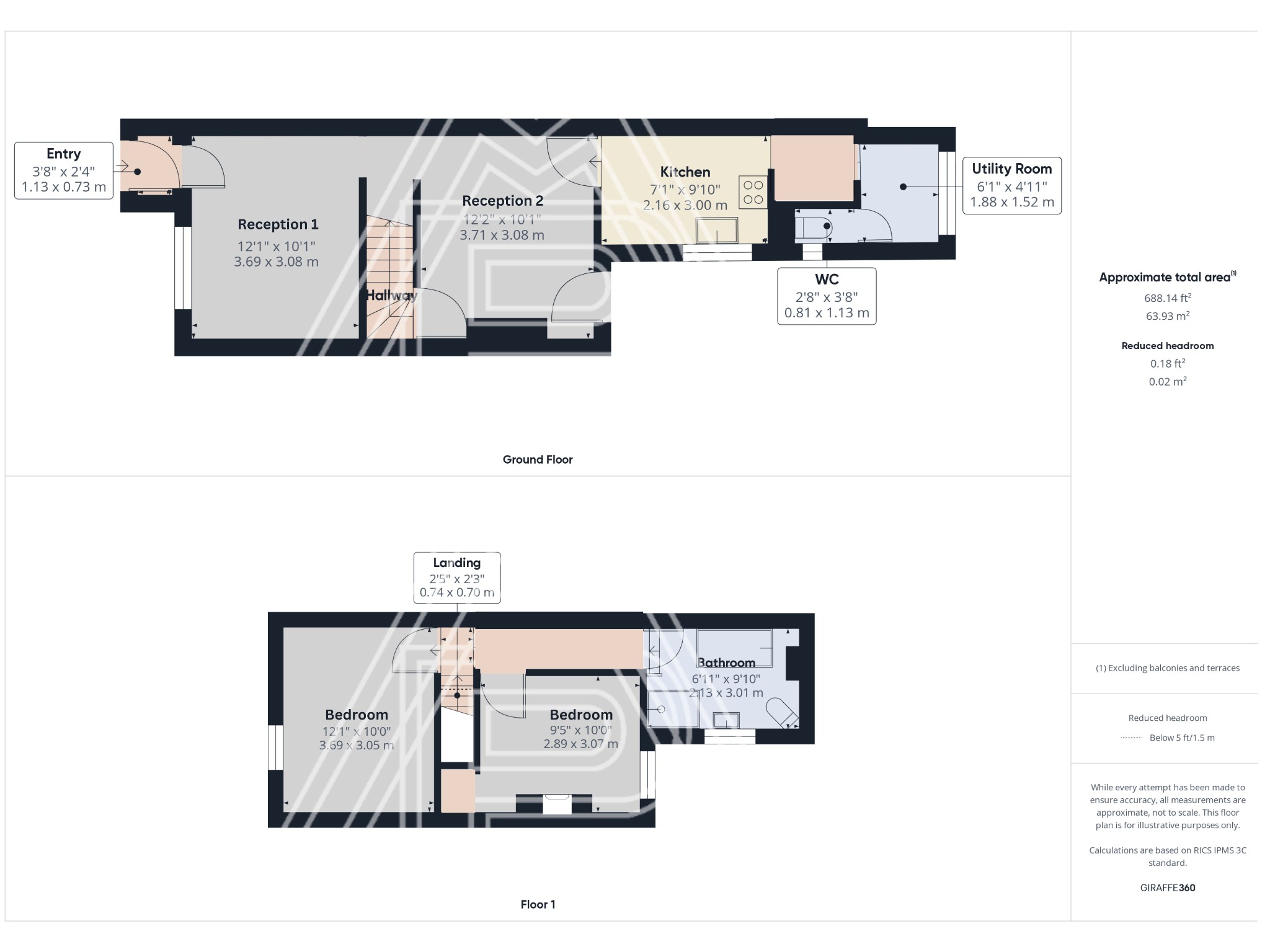 The property also includes a handy downstairs W.C. and a utility room for laundry. Upstairs, there are two generously sized bedrooms filled with natural light, along with a modern bathroom that has both a bath and shower.