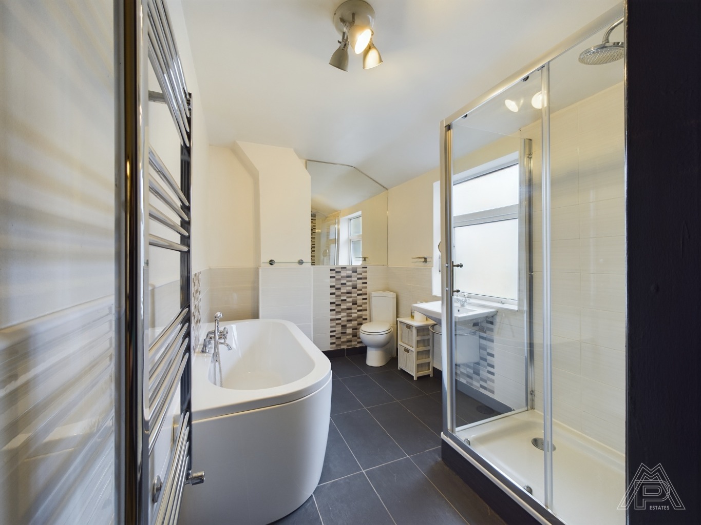 A spacious three-bedroom terraced house with a modern kitchen, stylish bathroom, rear garden, and ample parking, conveni...
