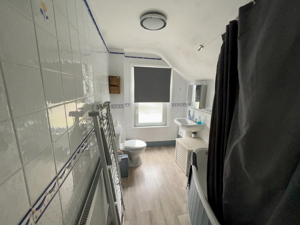 REAR BEDROOM: 9'1" x 11'2"EN-SUITE BATHROOM: 5'11'' X 8'8'', Corner Bath with shower over, WC and sink.