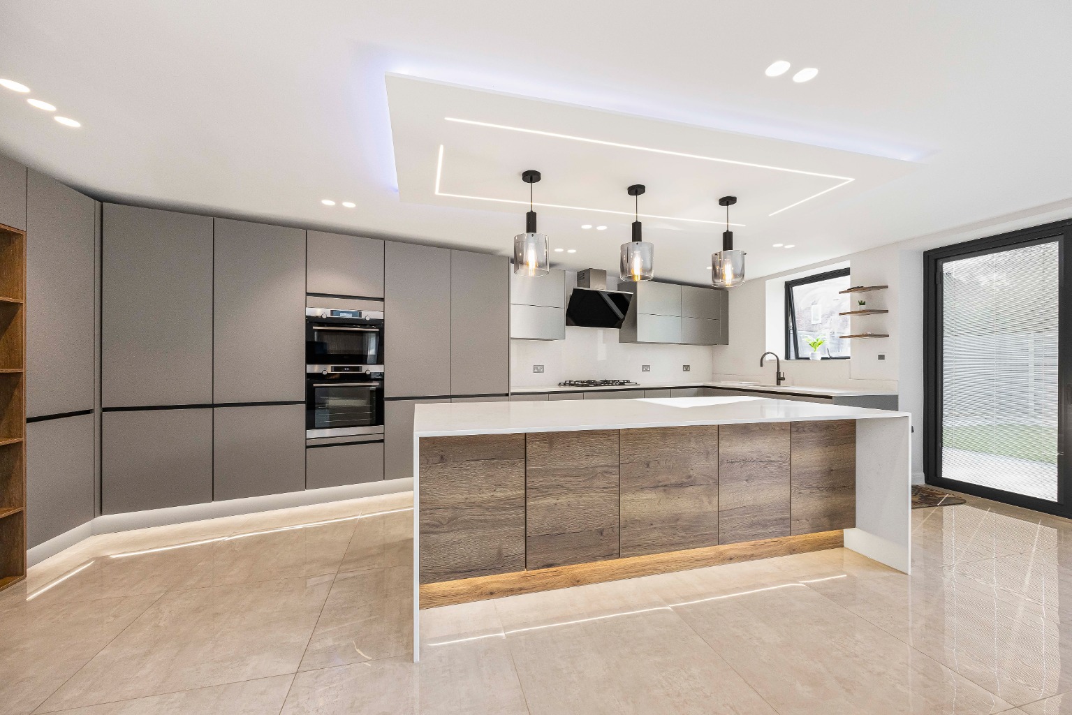 - Spacious and light-filled open-plan kitchen, dining, and living area