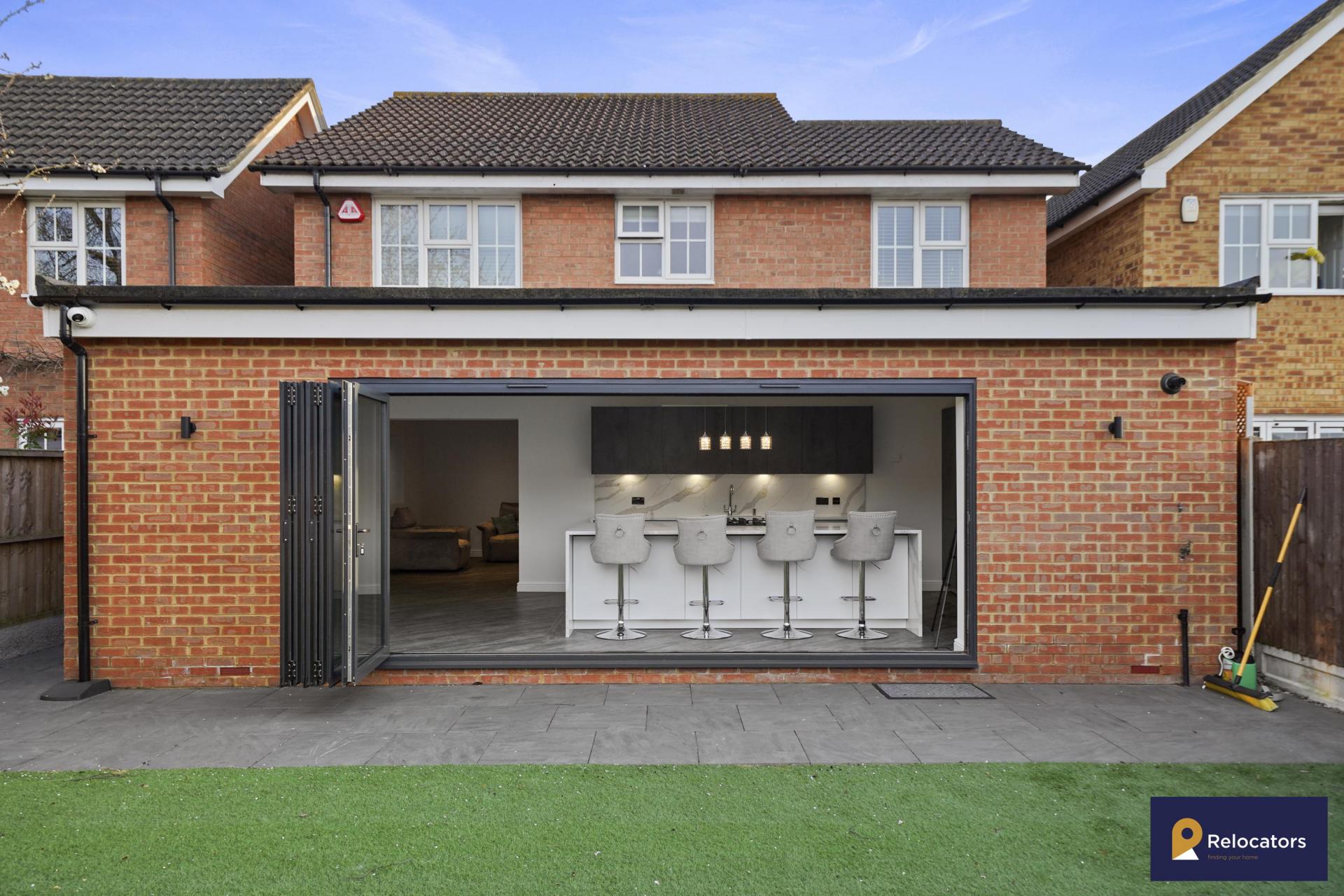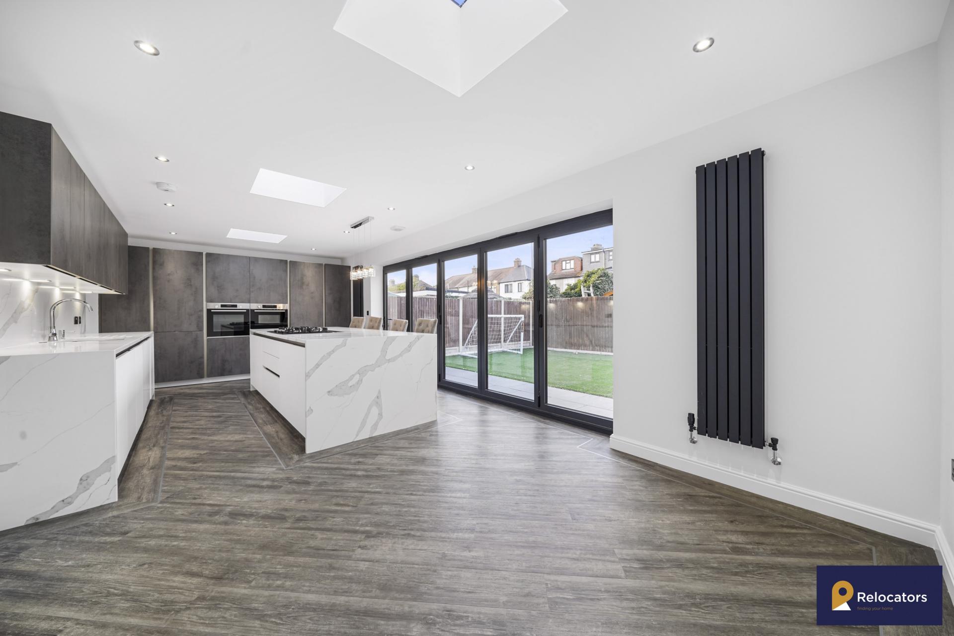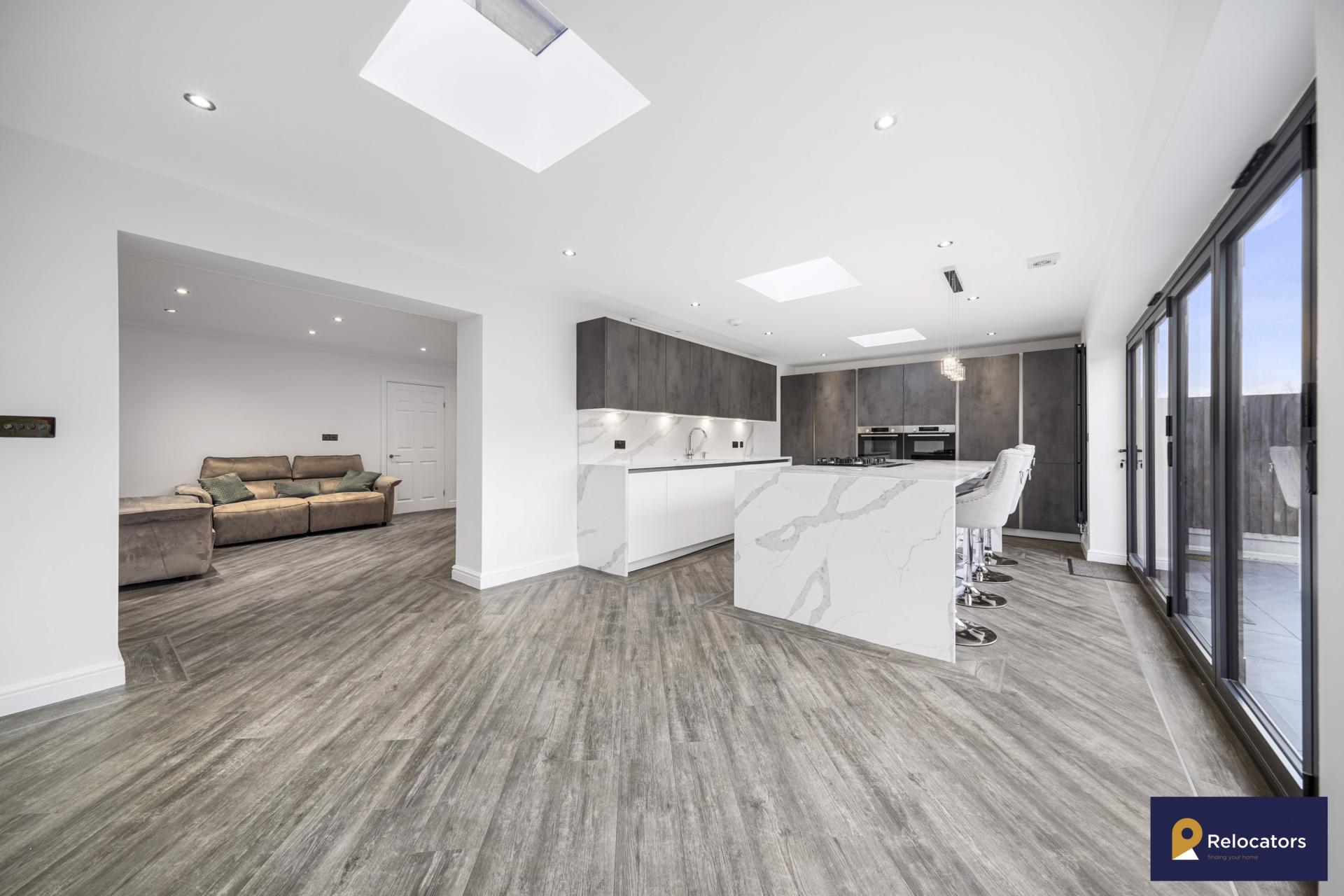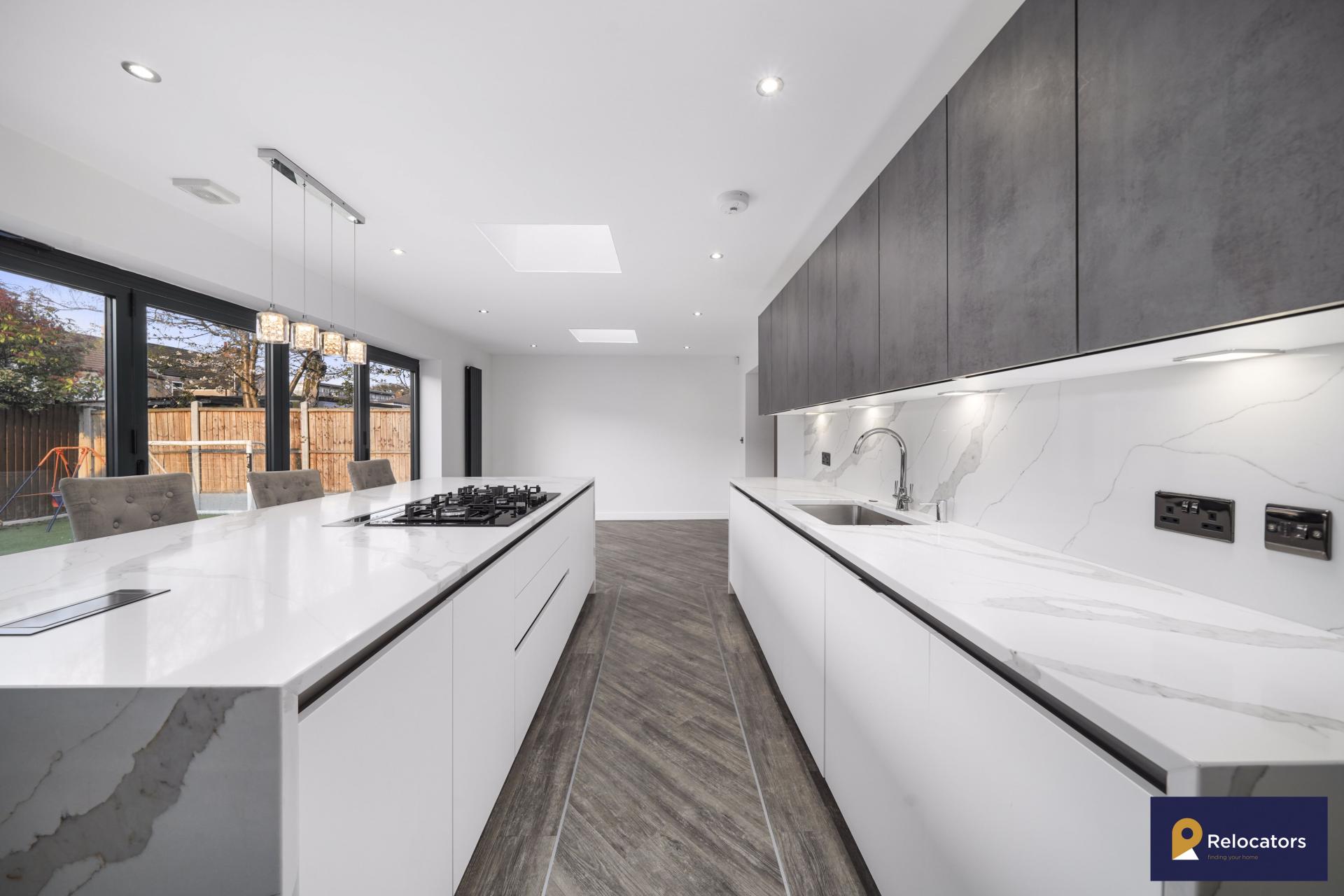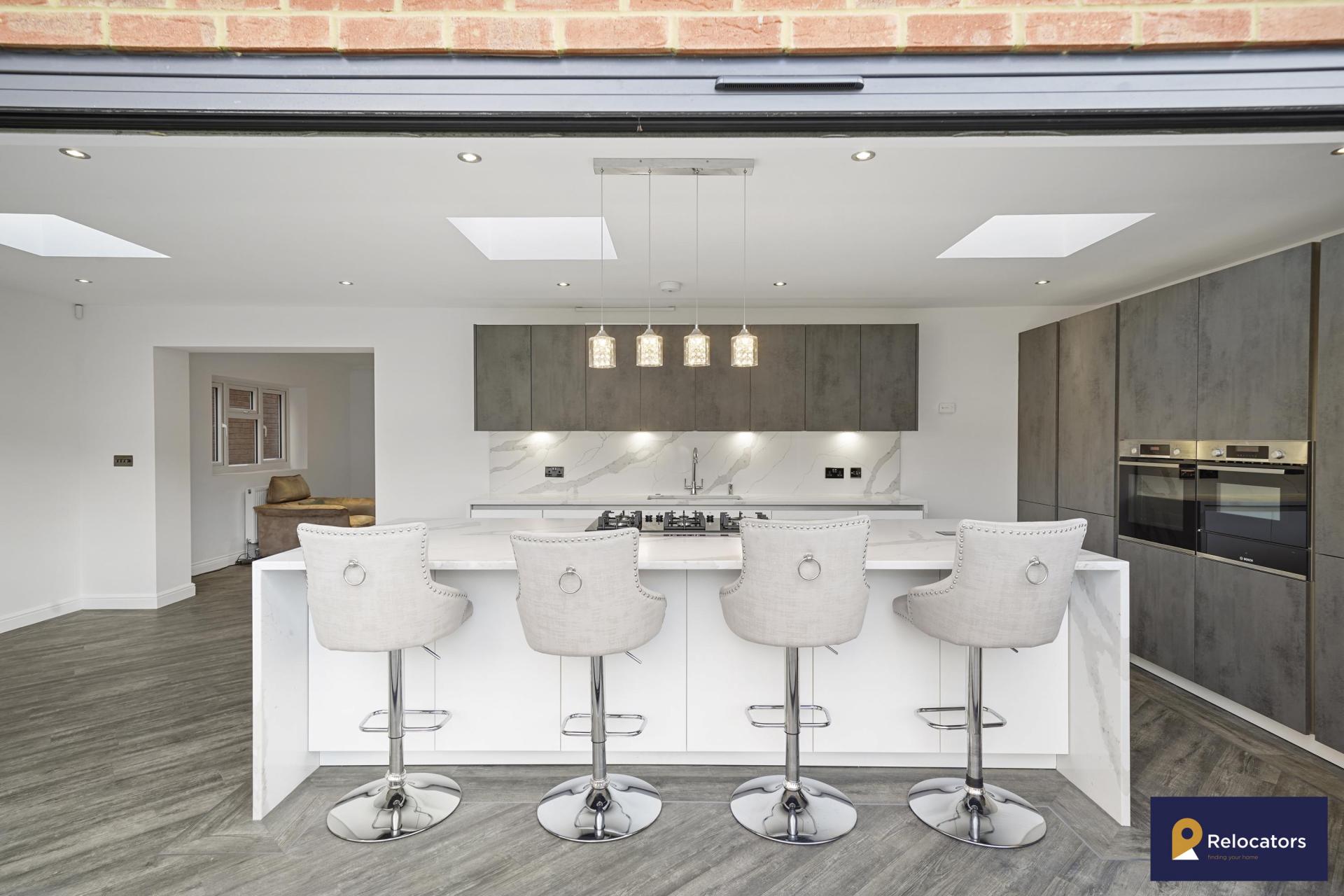 **Virtual tour in advert* Relocators are truly delighted to offer this stunning four bedroom house to rent. This is the first time it is coming available for rent and has high specification throughout. This property proudly boasts a German 'Rotpunkt' designer kitchen with three-inch depth Quartz worktop, a large kitchen island with built in gas hob, downdraft Bosch extractor and breakfast table area. It also has full Bosch appliances including large freezer, refrigerator, heating tray, oven, built in microwave, dishwasher and washing machine. It also has two large reception rooms, a ground floor wc, three double bedrooms (one with an en-suite), one smaller bedroom and a family bathroom. It also has off street parking and a garage (accessible from inside the house). This is a special property and would suit a young family to call it their home. Please contact is today to arrange a viewing.