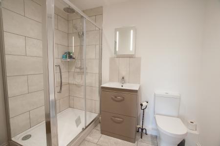 The second bedroom, which carries an excellent view of the surrounding countryside, also includes an en-suite shower room, almost identical to that in the master bedroom.