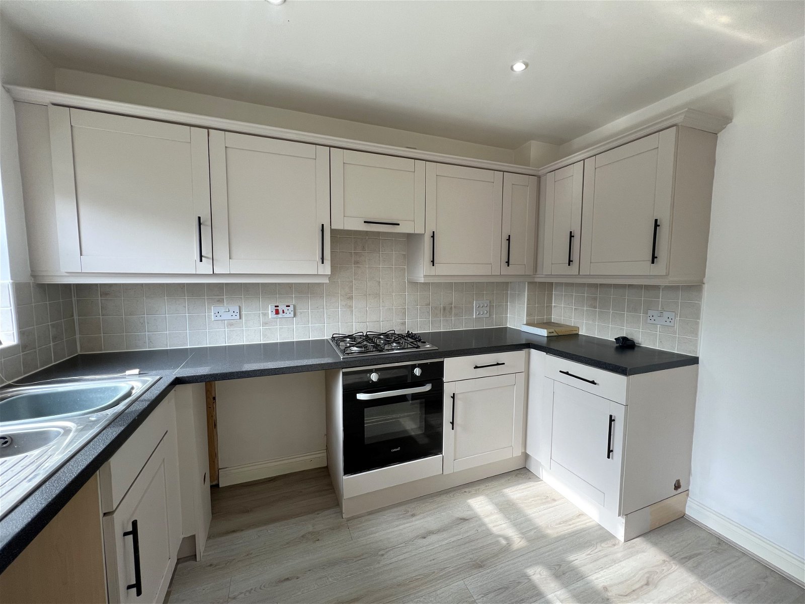 Featuring a range of wall and base units, with a complimentary roll edge work surface which in turn incorporates a one and a half bowl sink and drainer unit with a mixer tap over. Appliances include a four ring gas hob with an electric fan assisted oven beneath and an extractor unit over. There is space for a free standing fridge freezer and under counter plumbing for an automatic washing machine. The room has a rear facing double glazed window, spotlights to the ceiling, tiled splash backs to the walls and a central heating radiator.