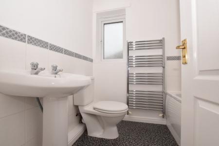 Upon entering, you are welcomed into a bright entrance hall that leads to a comfortable lounge, providing a perfect space for relaxation. The heart of the home is the well-appointed kitchen/diner, designed for both everyday living and entertaining. A handy downstairs WC completes the ground floor layout, enhancing practicality. Upstairs, you will find three well-proportioned bedrooms. The master bedroom features an en-suite shower room, offering a private retreat. A contemporary family bathroom serves the additional bedrooms, all finished to a high standard. The property benefits from gas central heating and double glazing throughout, ensuring comfort and energy efficiency.