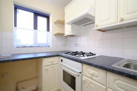Kitchen - 3.07m (10'1") x 1.58m (5'2") - Fitted with a matching range of base and eye level units with worktop space over, stainless steel sink unit with single drainer, space for fridge and washing machine, built-in electric oven, built-in four ring gas hob with extractor hood over, hardwood sealed unit glazed window to front, vinyl floor covering.
