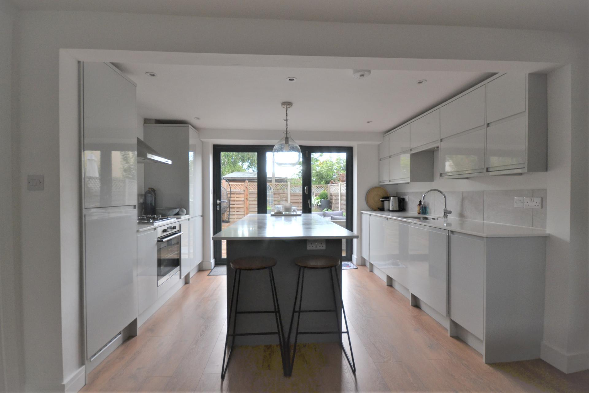 A well presented, three bedroom property that has been completely refurbished throughout. Located within short walking distance of Saffron Walden town centre and just a stones throw from The Common. The open plan kitchen diner offers a range of wall and base units as well as an attractive island with breakfast bar and bifold doors to the rear garden. Appliances include an electric oven, gas hob, integrated fridge/freezer, dishwasher and washing machine. There is also a living room with feature fireplace and log burning stove