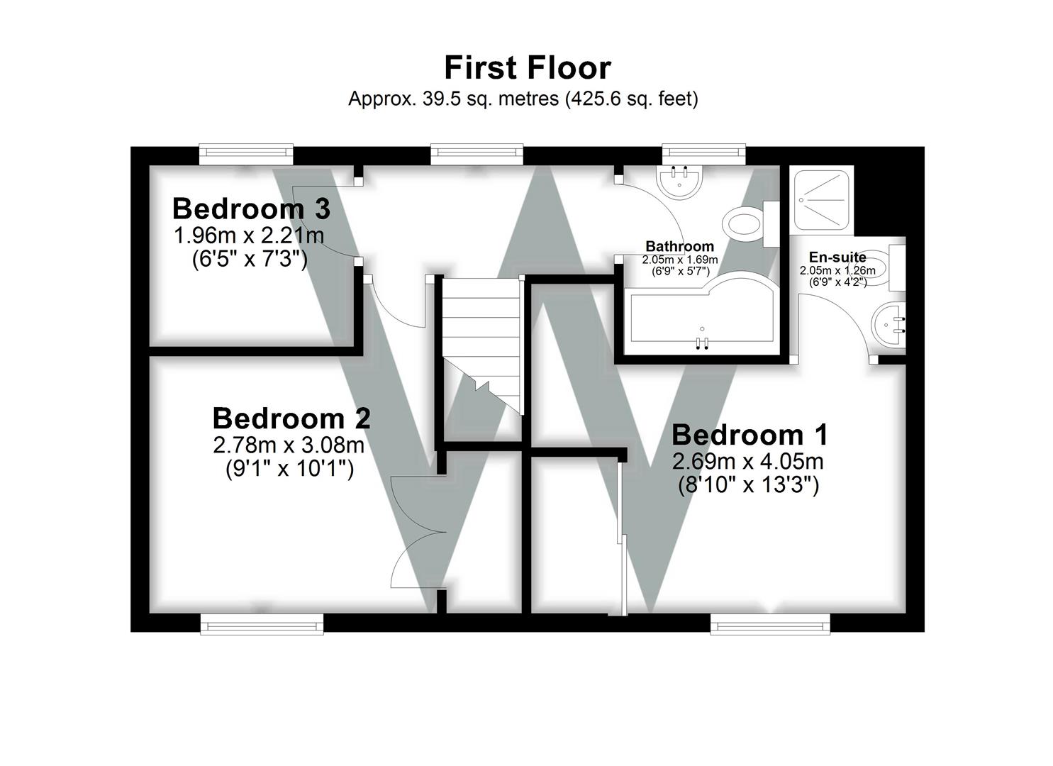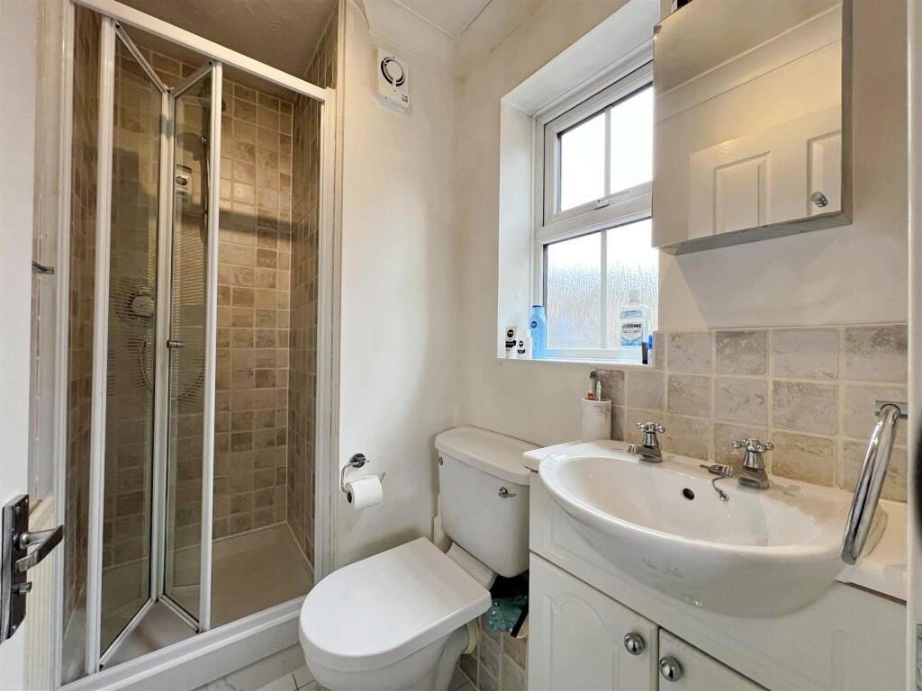 Upstairs, there are three bedrooms. The main bedroom includes built-in wardrobes and an ensuite shower room. The second bedroom is a double with a built-in wardrobe, while the third bedroom is well suited for use as a single bedroom or home office.