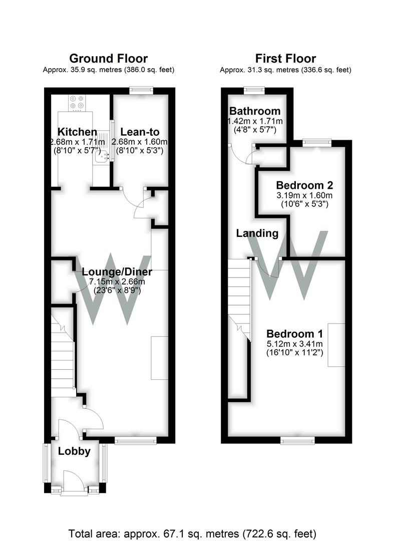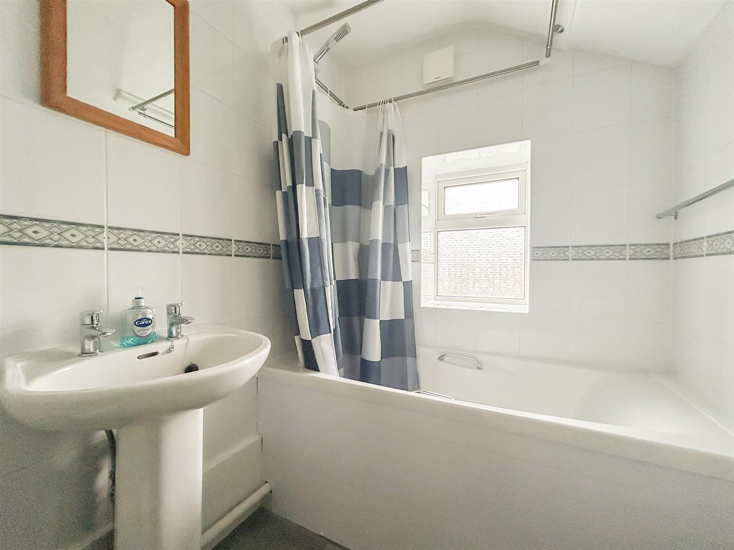Upstairs: bedroom one, double with built in cupboard. Bedroom two, small double or study space. Modern fitted bathroom with a white suite and thermostatic shower over the bath.