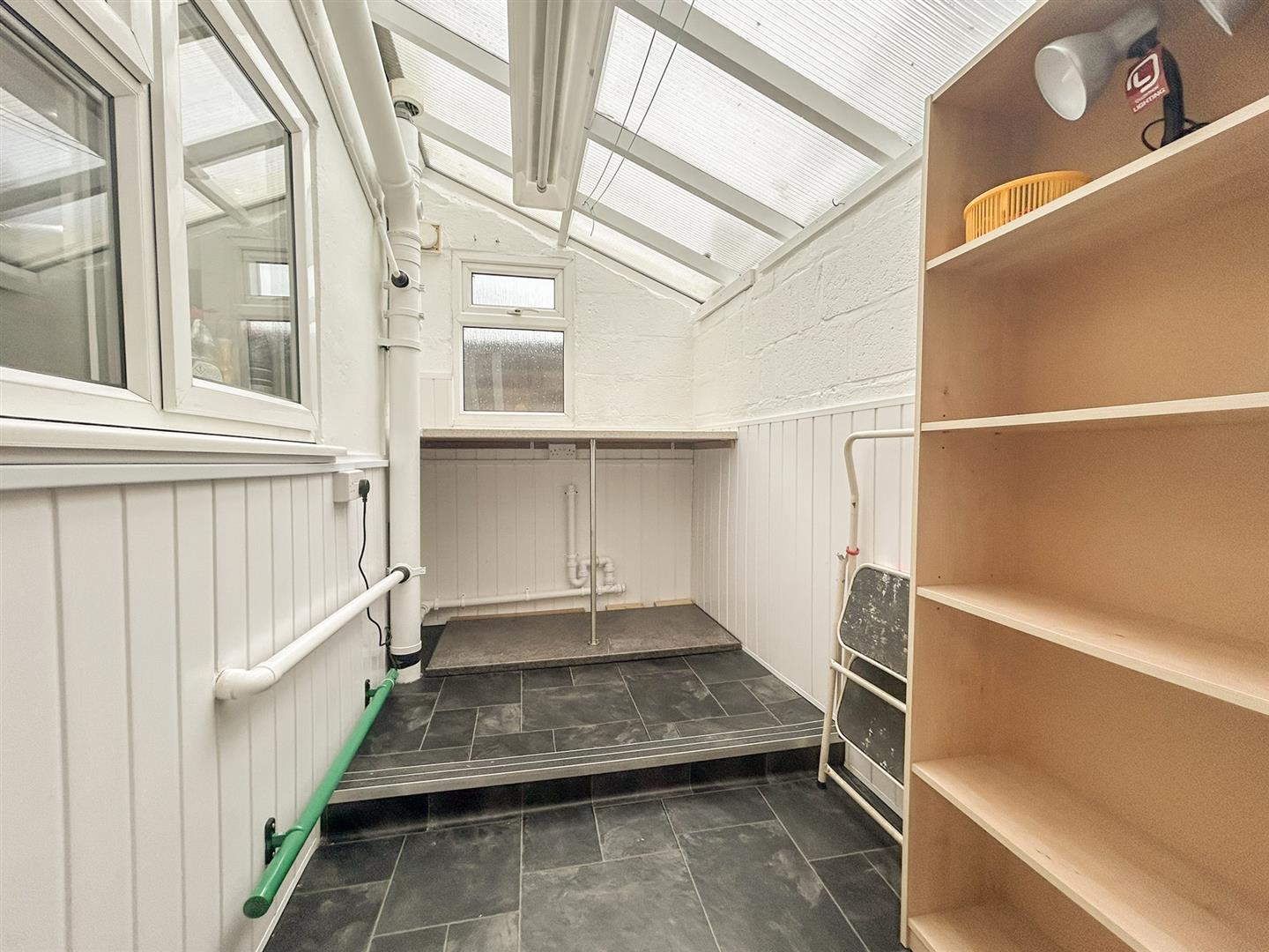 Entrance porch leading to a small inner hallway. Open plan living room with built in shelving and large storage cupboard. Modern fitted kitchen with gas hob and electric oven and extractor hood, space for an undercounter fridge. Utility room with plumbing for a washing machine and space for a tumble dryer.