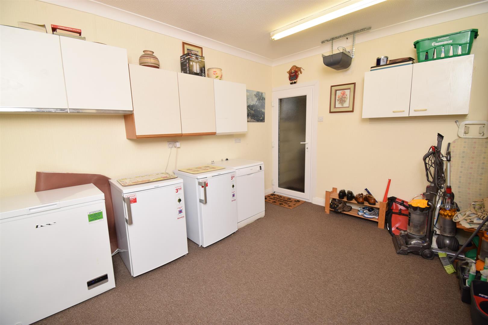 There is shared use of the kitchen with a table and chairs for use by the room tenants, shared with two other lodgers. Garage space, accessed off the kitchen, houses a separate fridge and freezer for communal use. Additionally, there is a washing machine and dryer in the utility room, which is activated via a payment meter. The landlord lives within the property and will share the use of the kitchen.