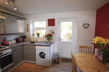 Entrance hall. Ground floor cloakroom. Spacious living room. Kitchen/diner with gas hob, electric oven, space for a washing machine and fridge/freezer; door to garden.