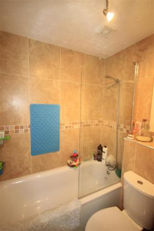 Upstairs; bedroom one, double with fitted wardrobes. Modern bathroom with shower over the bath. Bedroom two, double overlooking the garden.