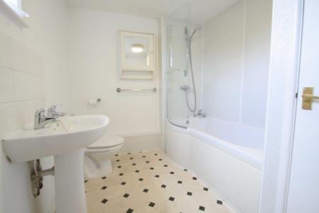 - Bathroom with electric shower over bath