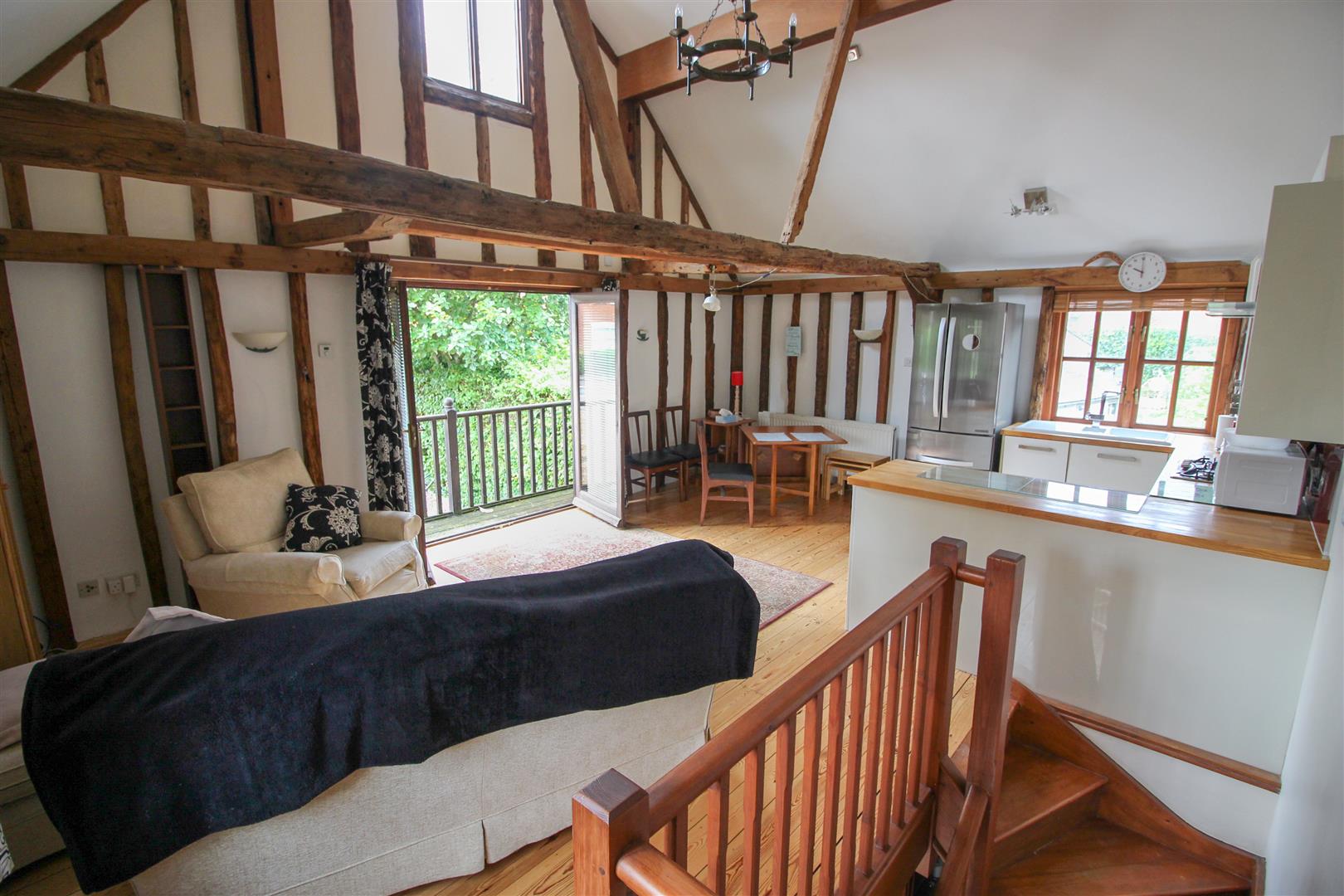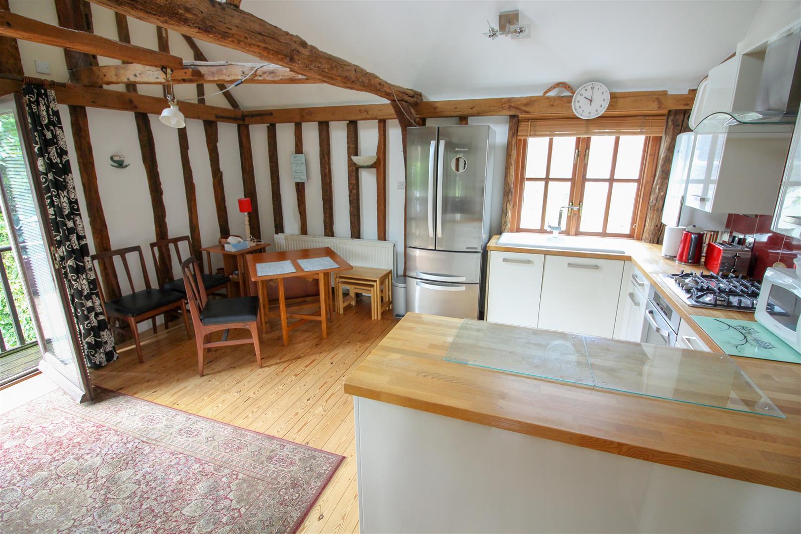 Available NOW is this rare, two bedroom end of terrace barn conversion located ideally just a 4 minute walk to Sawbridgeworth Train Station with direct links to London and Cambridge. The downstairs consists of two double bedrooms, family bathroom and an abundance of storage cupboards. Upstairs offers a stunning open plan kitchen/living space with high ceilings and beams throughout. The property is set back from the road and offers an allocated parking space and a front garden.