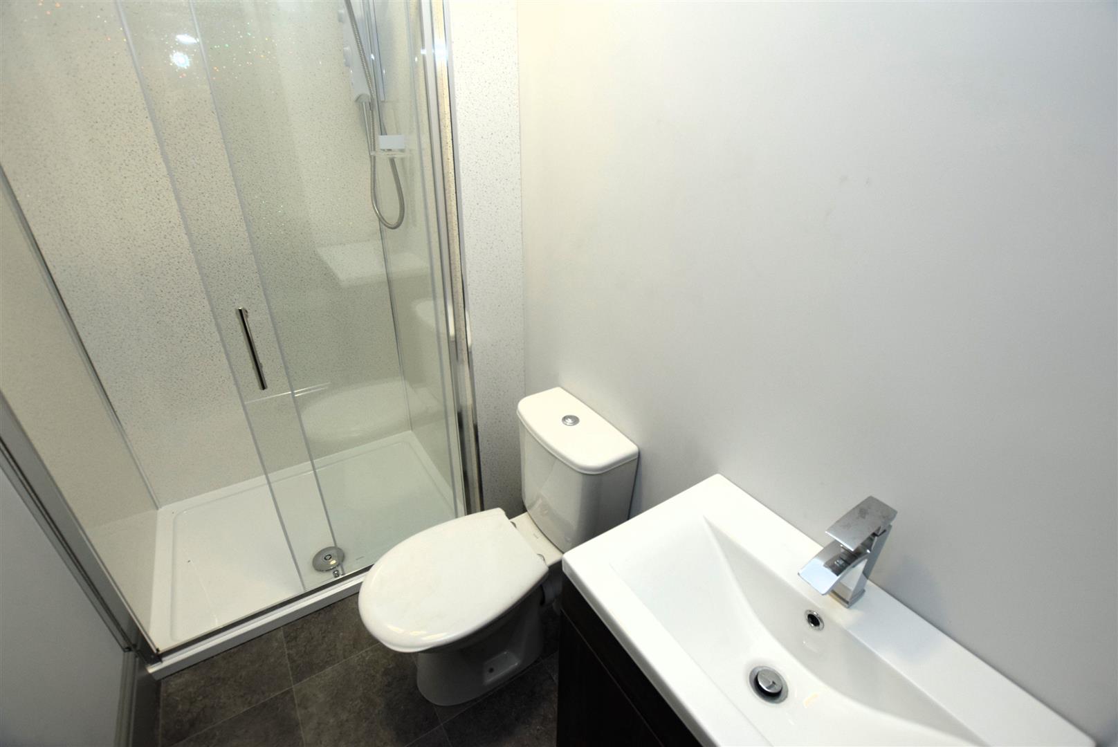 Bathroom - Modern white bathroom suite comprising of low flush WC, wash hand basin, modern walk in shower, extractor fan.
