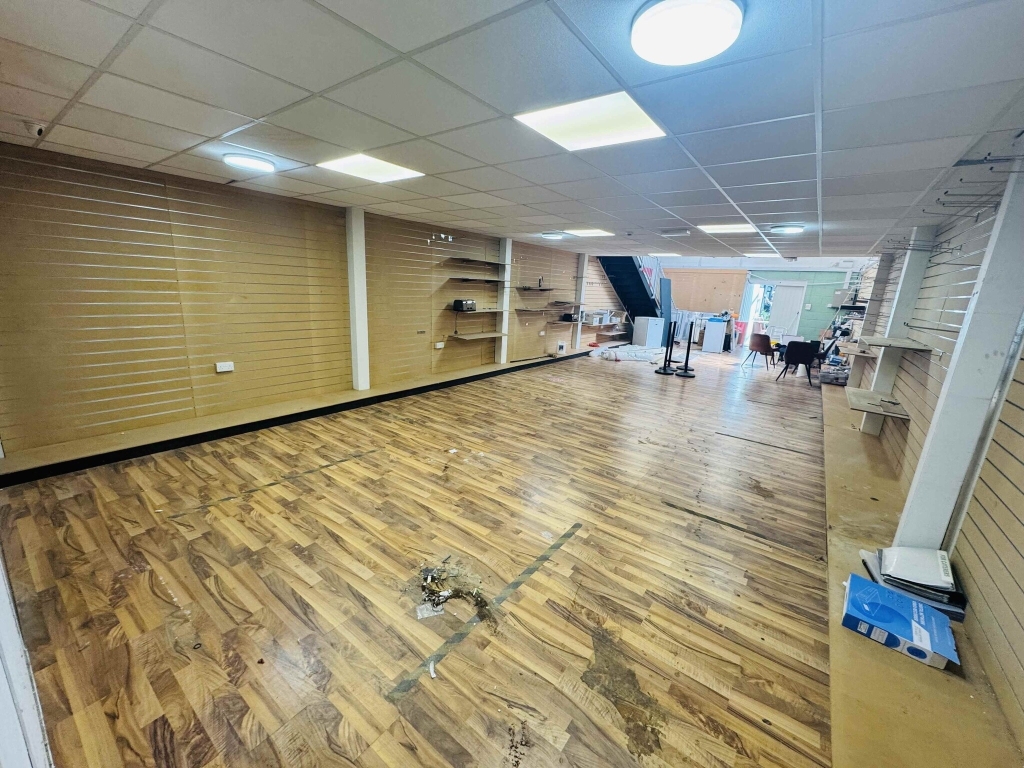 Tucked to the rear of The Feather Bed Café Bar and Kitchen on the sought-after North Terrace, this early-19th-century brick-built end-terrace property exudes charm and flexibility. The ground floor hosts a spacious retail area ideal for showcasing products or services, complete with substantial rear storage. A staircase leads to the mezzanine level-formerly a gift shop-offering further adaptable space suited for retail, office use, or creative enterprises.