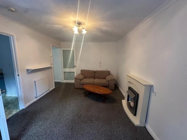 Lounge - 4.4 x 3.1 (14'5" x 10'2") - Fitted fawn colour carpet. Cream walls. White paintwork and ceiling. Double glazed bay window. 3 bulb glass light fitting. Emergency pull cord. Feature fireplace with electric fire. Radiator