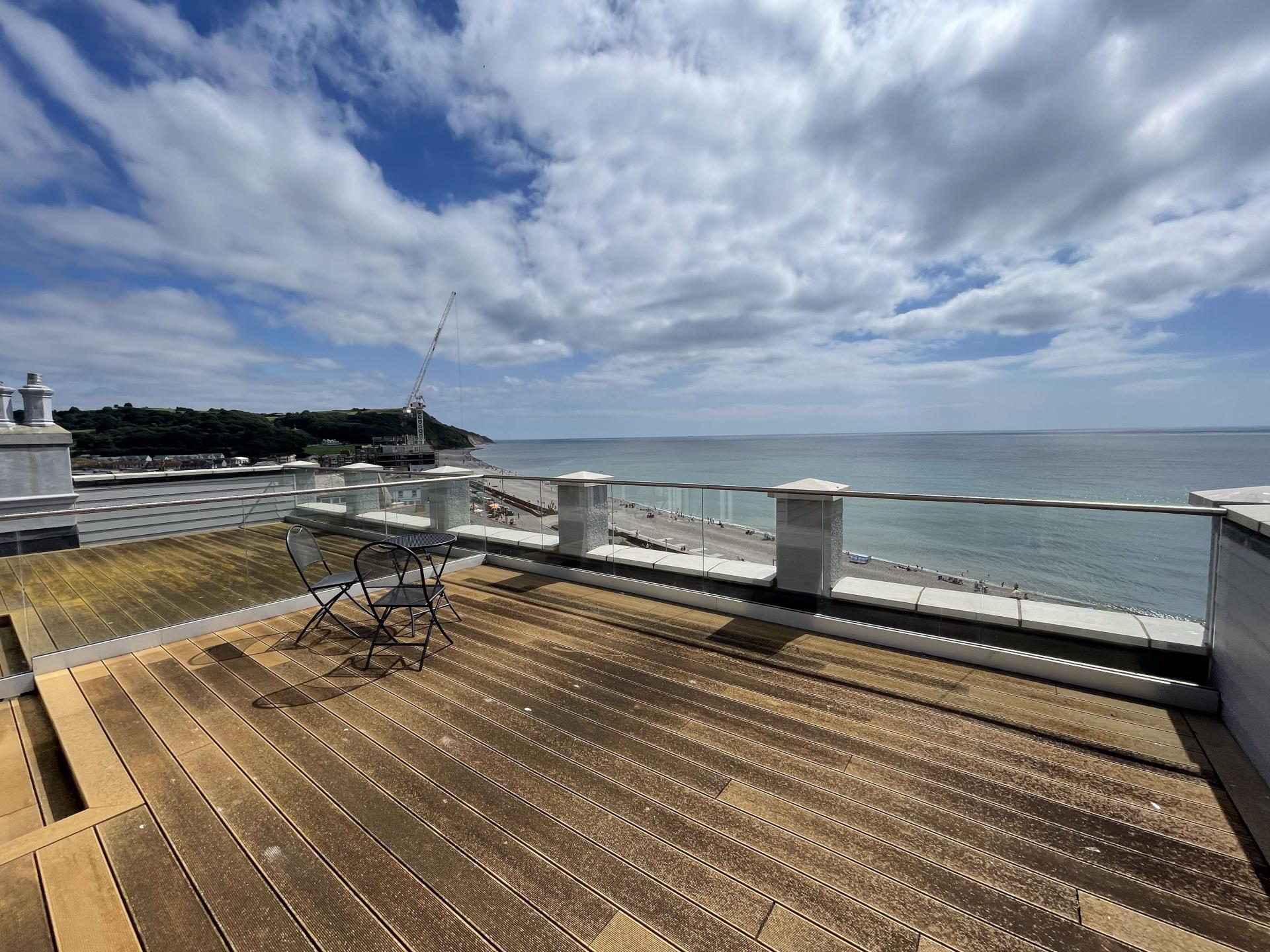 A stunning 2 bedroom, unfurnished, top floor apartment located on Seaton sea front. This apartment comprises, breath taking sun terrace, 2 good size bedrooms, fitted kitchen, bathroom and living room boasting views over Lyme Bay. Off Road parking. GCH. Broadband included. EPC: D. Council Tax: C.
