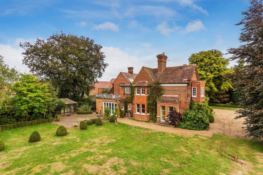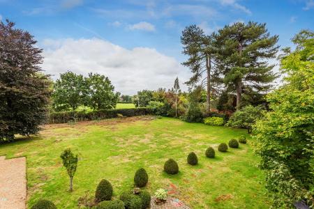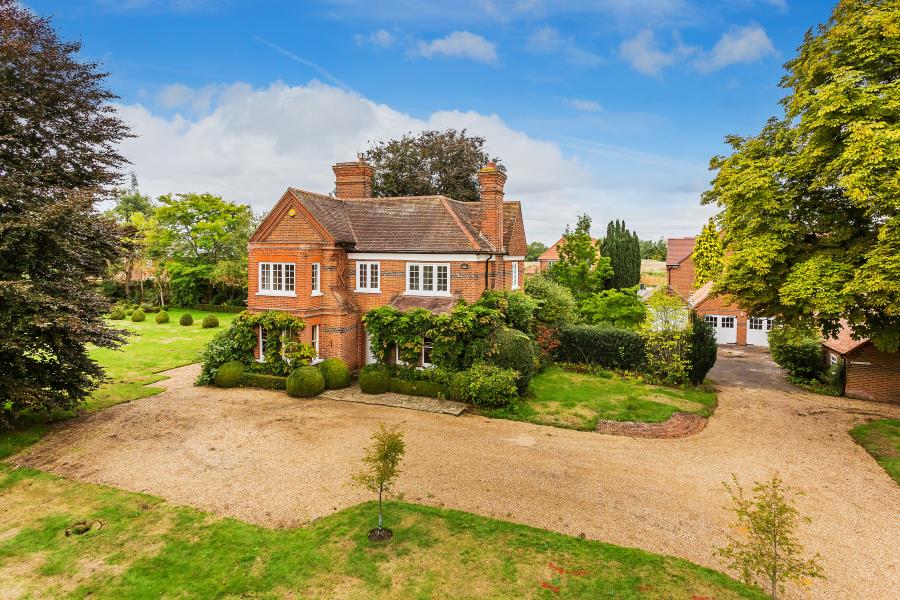 Set in a picturesque rural setting within glorious gardens and grounds of nearly an acre, this exceptional four bedroom detached home conjures an immense degree of grace and grandeur. Dating back to the 1870s and beautifully styled and presented throughout, behind its distinguished facade an expansive layout unfolds from a central entrance hall onto three wonderful reception rooms, a study and an exemplary Shaker kitchen/breakfast room. Principal and second bedrooms have luxurious en suites, while outside the secluded grounds include a superbly appointed double height home office, garaging and a gym. Description Tucked discreetly away from prying eyes at the end of a sweeping carriage driveway, Heath Farm instantly engenders a sense of history and heritage. Dating back to 1878, its picturesque setting generates a superior rural lifestyle, while the location has ease of access to the village amenities of both Send and Ripley as well commuter routes and the high streets of Guildford and Woking. Step inside and you’ll find an elegant central hall unfolding onto a sympathetically styled layout that proffers every opportunity for you to relax, spend time together and entertain friends. Commendably presented throughout it pairs warm neutral hues with refined greys and cool whites to create a marvellous family abode. Framing the entrance hall, exceptional double aspect drawing and dining rooms supply the perfect introduction. Tremendously proportioned and wonderfully lit by their bay windows each room has the warming tones of wood floors, and whilst the spacious drawing room has a majestic fireplace, French doors in the dining room tempt you out into the garden for after dinner drinks. The leafy vistas continue in a separate study, while the natural flow of the ground floor guides you to the rear where a refined kitchen/breakfast room unites with the adjoining family room. Supremely well appointed with beautifully crafted Shaker cabinetry, the kitchen/breakfast room offers every convenience with its first class array of appliances and benefits from an additional pantry and utility room. Its tiled floor extends cohesively into the subtly delineated stylish family room where bi-fold doors seamlessly connect you with the south-west facing patio allowing daily life to filter easily out into the sunshine. A cloakroom completes the ground floor. The period charm and abundance of natural light continues upstairs where the glorious gardens and grounds lend a heavenly backdrop to each of the four equally notable double bedrooms. An enviably large and graceful principal bedroom with a bay window seating area has an indulgent en suite with fitted wardrobes and a luxurious suite with a raised inset bath, glass framed shower and dressing area. Two further bedrooms share the family bathroom, while a third has a sumptuous en suite of its own that opens onto a balcony and has a fabulous freestanding slipper bath and walk-in rosehead shower. Outside Encompassed by established lawns peppered with clipped topiary, blossom trees and shrubs, a quintessential carriage driveway gives the perfect vantage point to admire the architecture of this historic home. The gardens stretch out for nearly an acre wrapping around the property to give you every excuse to take a stroll in the sunshine. Tranquil and idyllic, to the rear of the house brick paved and pebbled patios produce a choice of spots for al fresco dining or to simply sit back and unwind with the weekend papers. Statuesque conifers and hedgerows border the expansive lawns, and a summerhouse is a haven from the hubbub of the day.