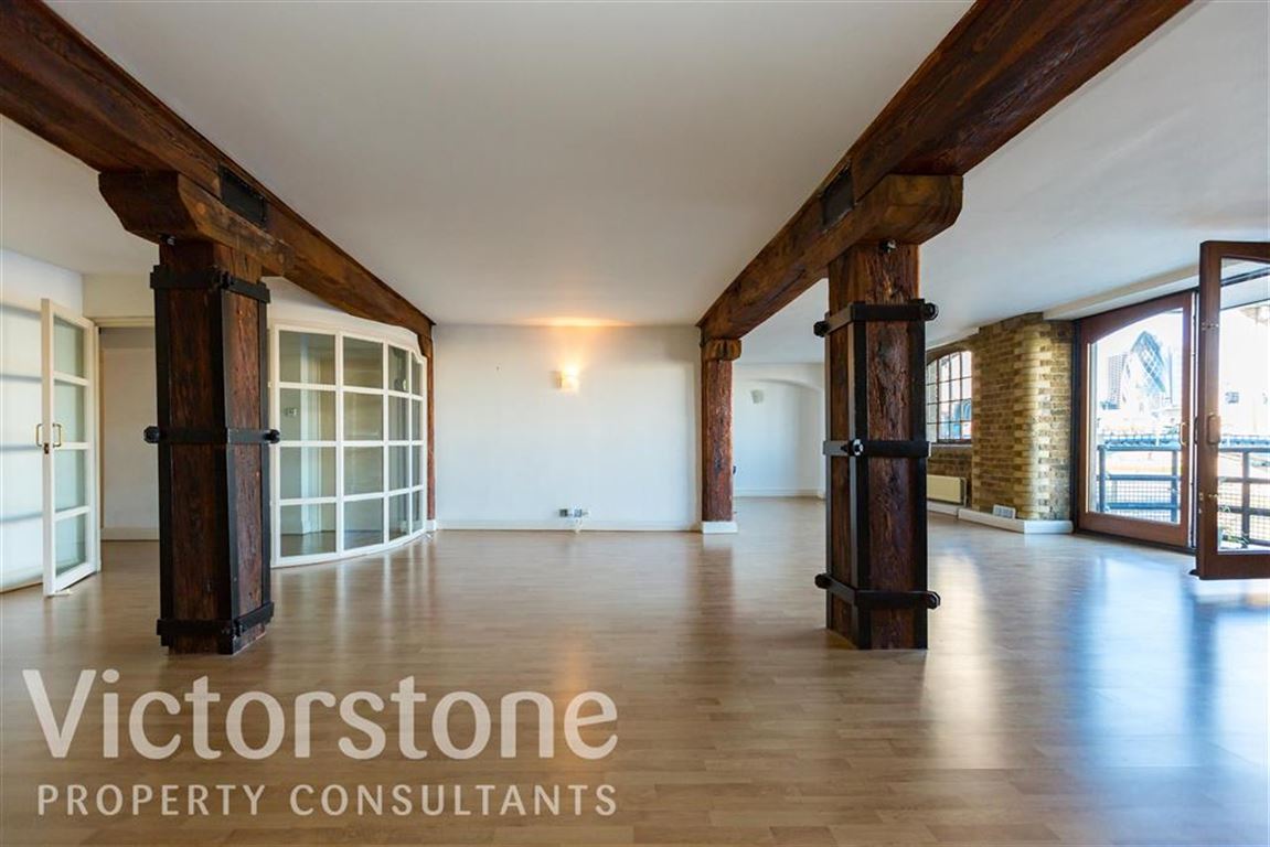 An incredibly spacious 3 bedroom, warehouse conversion apartment to rent in a popular development in the heart of Shad Thames. Off the entrance hallway are 2 double bedrooms, both with ample built in wardrobes. The master bedroom has access to a balcony whilst the large en suite bathroom has a wet room style shower. There is an additional family bathroom and separate cloakroom. The open plan reception room/dining area has wooden floors, feature beams and uninterrupted views of the Tower Bridge, river Thames and City which can be enjoyed from a large balcony. The kitchen has plenty of work top space and gas hob. Accommodation comprises 3 bedrooms, 2 bathrooms and additional cloakroom, reception/dining room, kitchen and 2 balconies. Available unfurnished. EPC C.
