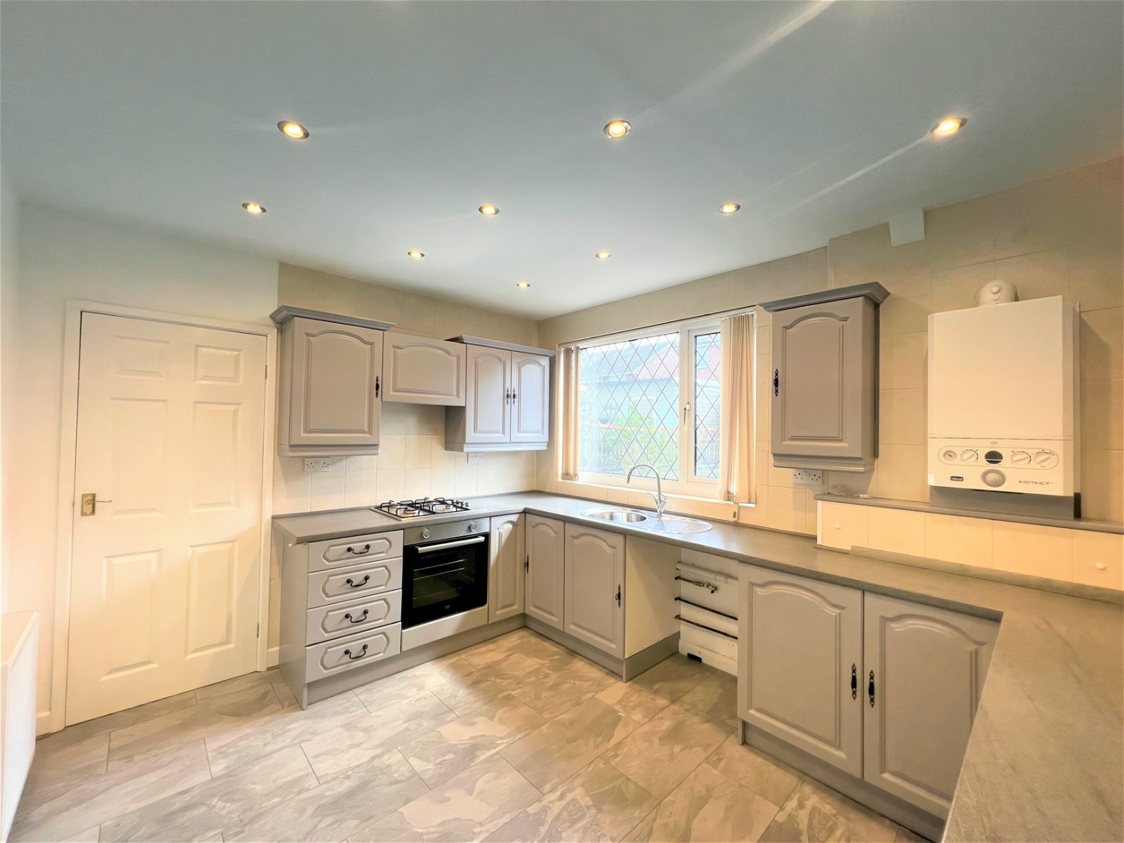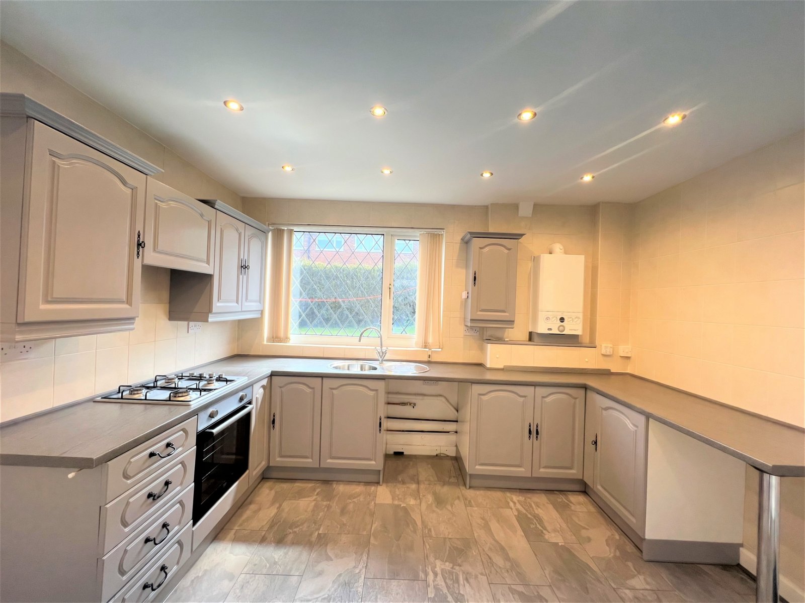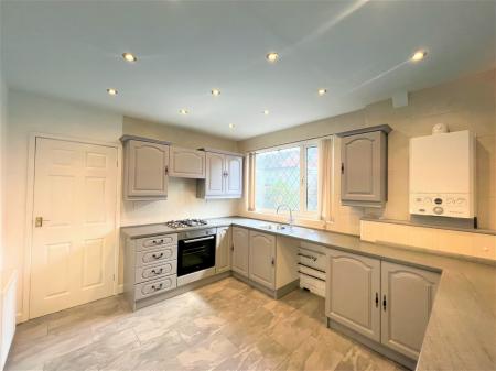 Having a double glazed window and a Upvc entrance door which gives access to the side aspect of the property and to the rear garden and a central heating radiator. The kitchen is presented with a range of wall and base units with a complimentary roll edge work surface, which in turn incorporates a stainless-steel sink and drainer unit with a mixer tap over. Appliances include a four ring gas hob with an electric oven below and an extraction unit over. The room has under counter plumbing for an automatic washing machine, space for a free standing fridge freezer, partial tiling to the walls and spot lights to the ceiling. The central heating boiler is housed in the kitchen. A door gives access to the dining room.