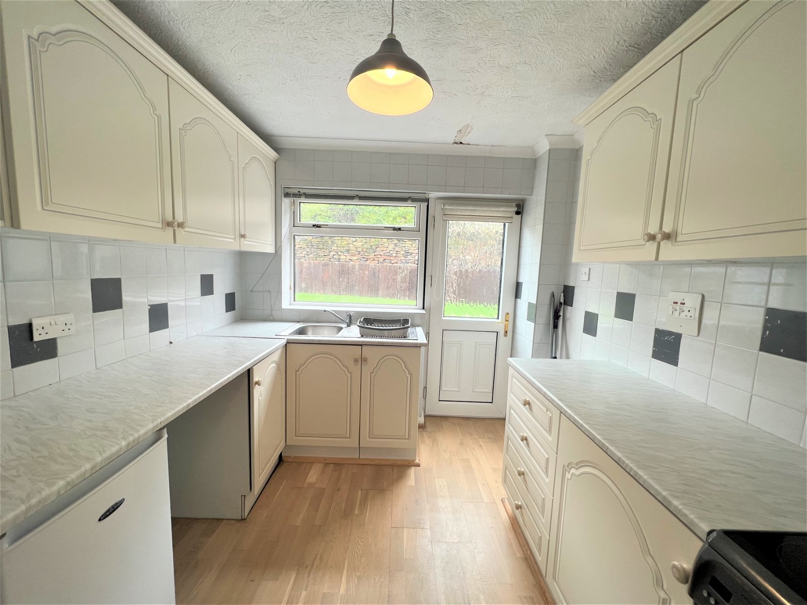 Presented to the rear of the property having a range of wall and base units with a complimentary work surface which in turn incorporates a Stainless-steel sink and drainer unit with a mixer tap over. There is a free standing cooker with an extraction hood over, an under counter fridge and an automatic washing machine. **The white goods have been included by the landlord, but will not be replaced if broken.**
