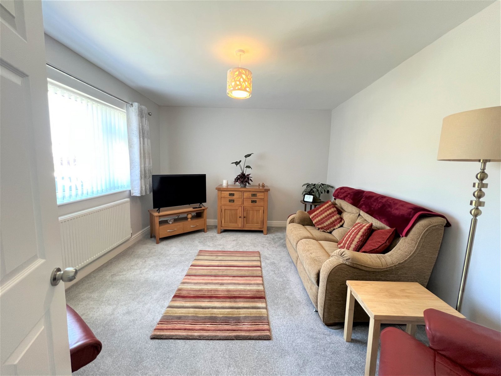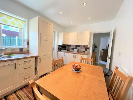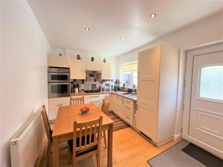 Positioned to the rear aspect of the property, having a double glazed window and a Upvc entrance door which opens directly onto the rear garden. The kitchen is presented with a modern range of wall and base units with a complimentary work surface, which in turn incorporates a Stainless-steel sink and drainer unit with a mixer tap over. A complement of appliances include an integrated double oven, a four ring gas hob with an extraction unit over, a fridge, a freezer. The room has tiled splash backs, spot lights to the ceiling and a central heating radiator.