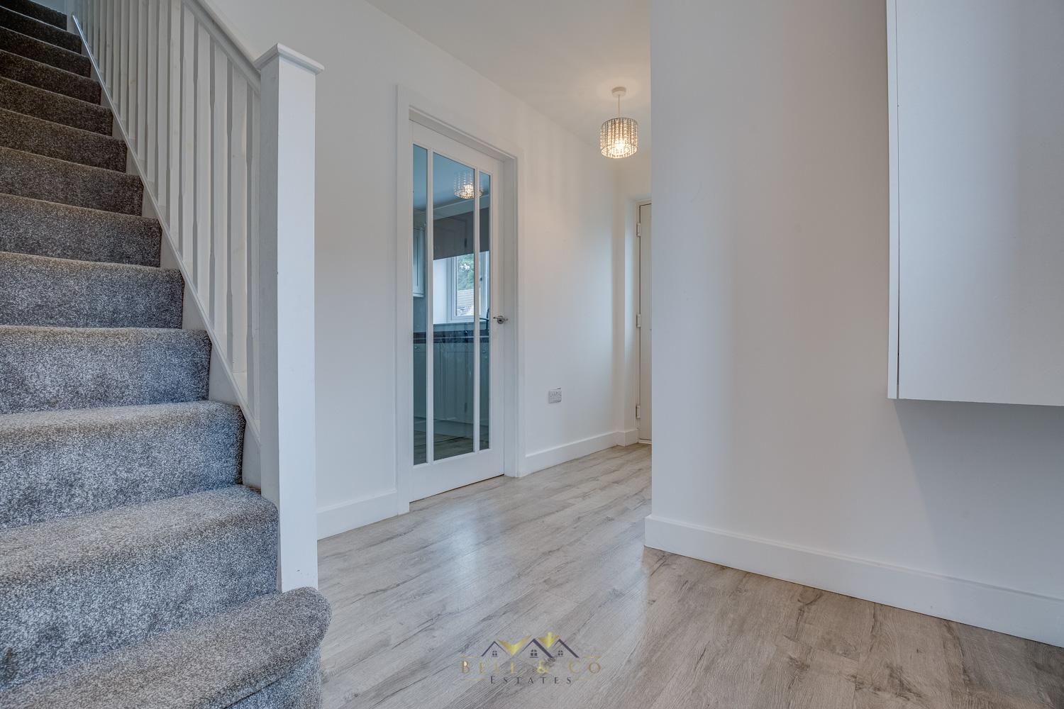 The ground floor features a welcoming entrance hallway that leads into a modern, fully fitted dining kitchen with contemporary appliances, perfect for cooking and entertaining.