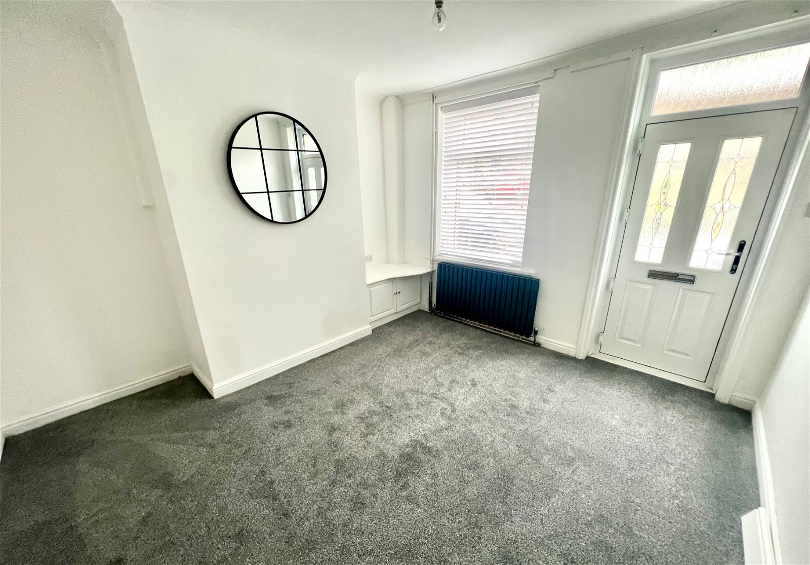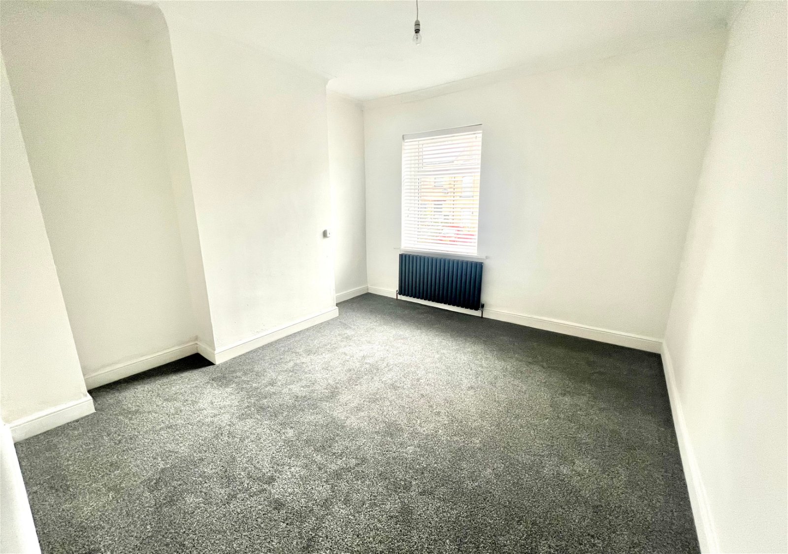 A well proportioned room with a double glazed window and a contemporary styled radiator.
