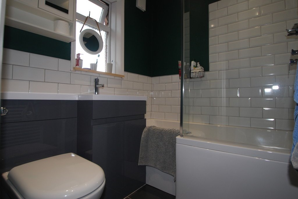 Featuring a modern recently fitted three piece suite finished in white, comprising of panelled bath with shower over, wash hand basin and low flush WC. The walls are partially tiled and inset spotlighting to the ceiling gives the room a lovely finish. There is a side facing obscure double glazed window and a central heating towel radiator.