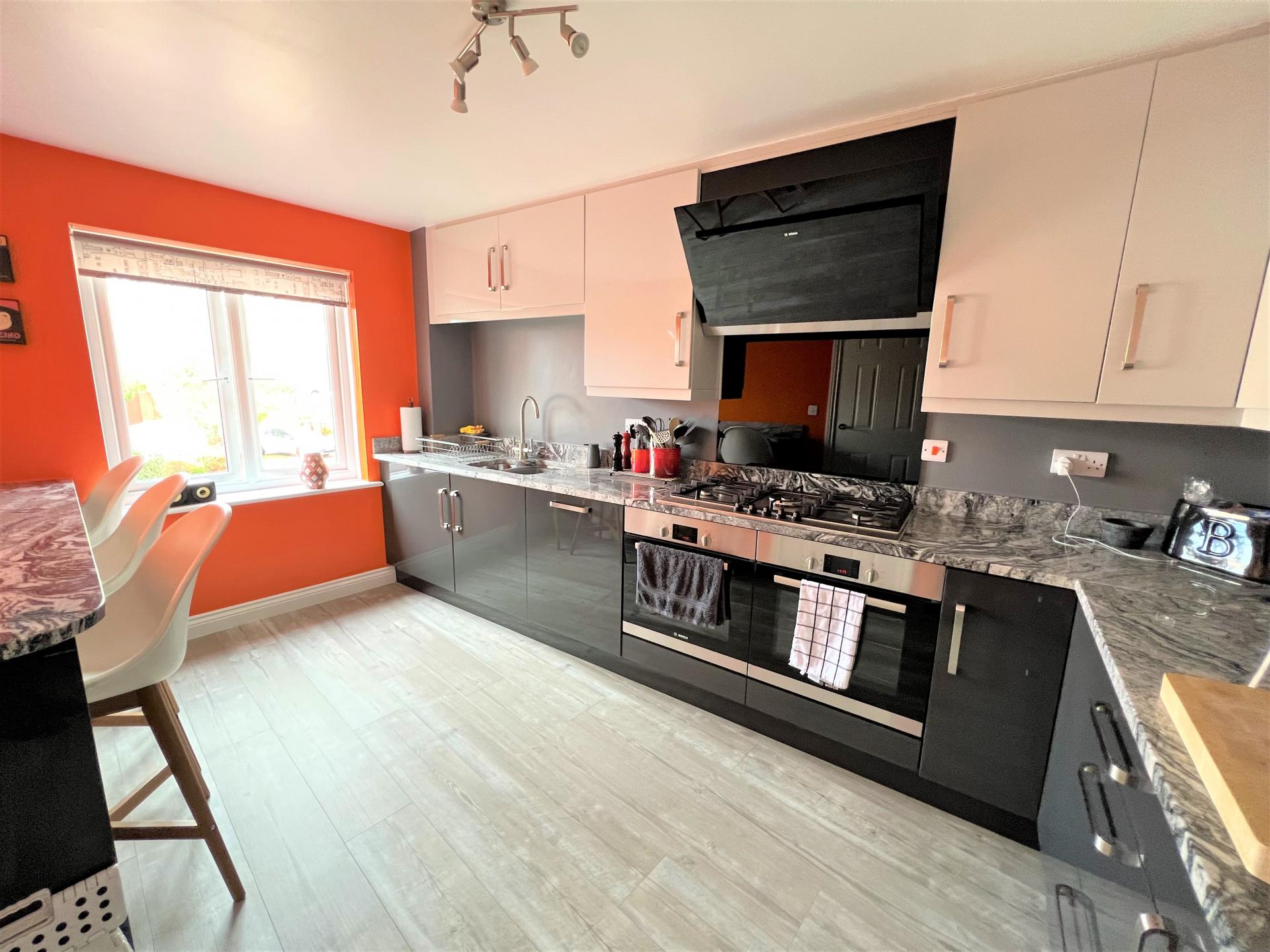FIRST FLOOR LANDING The landing gives access to the breakfast kitchen and lounge diner and has a front facing double glazed window and a central heating radiator. Stairs rise to the second floor level.