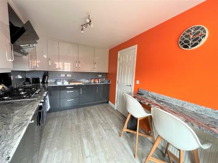 BREAKFAST KITCHEN 13' 9" x 8' 1" (4.19m x 2.46m) A fantastic breakfast kitchen presented with modern wall and base units and drawers, with a complimentary work surface which in turn incorporates a stainless steel sink and drainer with a mixer tap over. There is a separate 3 seat breakfast bar. Appliances include a five ring gas hob with a glass splash back with an extraction unit over, with under counter twin ovens beneath, an integrated fridge and freezer and a dish washer. There is a front facing double glazed window and a central heating radiator.