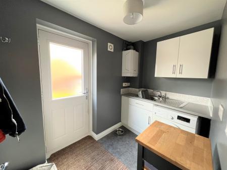 UTILITY ROOM 5' 3" x 9' 0" (1.6m x 2.74m) Also located to the rear of the property, having a Upvc door giving access to the garden. The room has wall and base cupboards with a work surface, which incorporates a stainless steel sink and drainer with a mixer tap over and tiled splash backs. There is plumbing for an automatic washing machine and the central heating boiler is housed in this room.