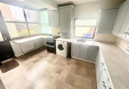 The kitchen is presented with furniture comprising base and wall cupboards, with a Granite work surface which incorporates a drainer and has an inset Stainless-steel sink unit. This room has double glazed windows to two aspects, a free-standing gas cooker comprising of oven and grill with a four-ring gas hob. There is plumbing for an automatic washing machine and space for a fridge freezer.
