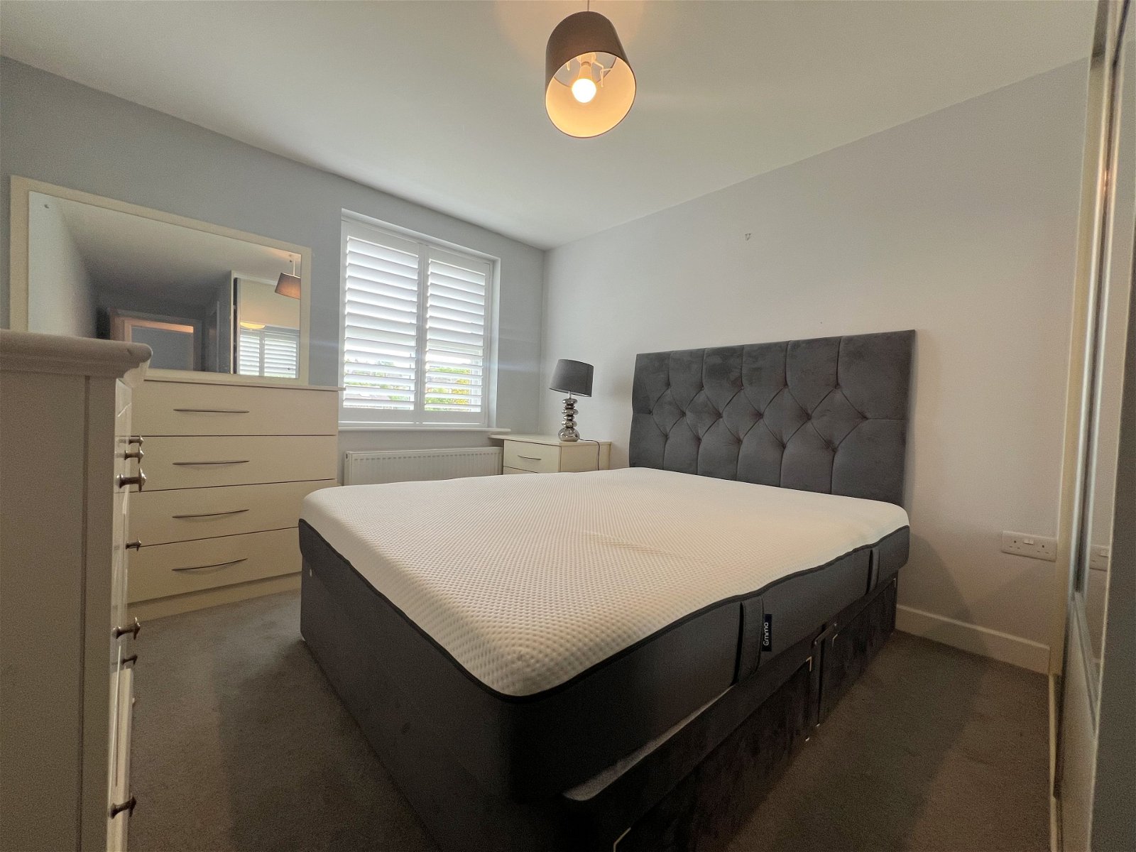 A second generous double bedroom to the rear of the property, having a range of fitted wardrobes, a double-glazed window inviting pleasant views and a central heating radiator.