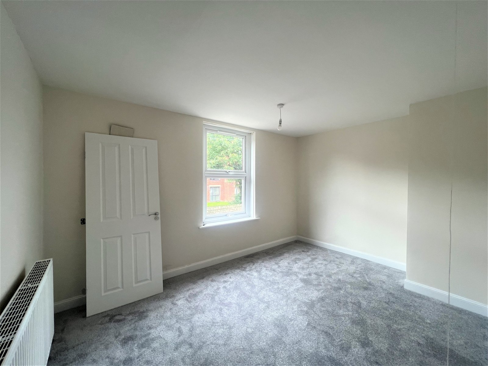A front facing double bedroom having a double glazed window and a central heating radiator. The room has been recently decorated and fitted with a new carpet.