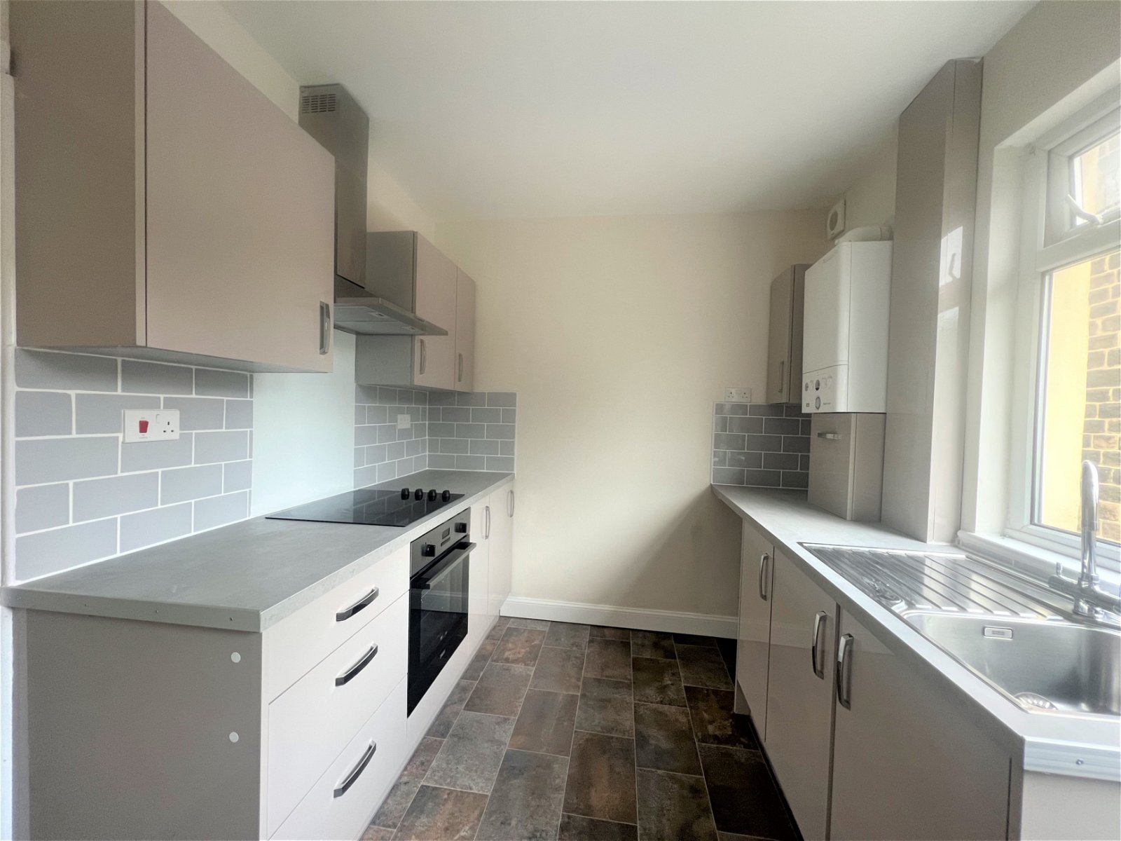 Featuring a newly fitted kitchen comprising a range of modern wall and base units, with a work surface which in turn incorporates a Stainless-steel sink and drainer unit with a mixer tap. A complement of appliances includes a four electric ring hob, with an electric oven beneath and an extraction unit over. with under counter plumbing for an automatic washing machine. The room has splash back tiling to the walls, a double glazed window and a Upvc entrance door which opens to the rear yard. The central heating boiler is also housed in the kitchen. Stairs rise from the kitchen to the first floor level.