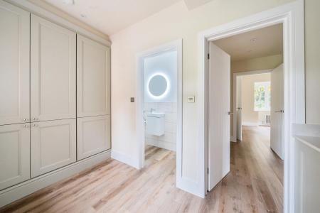 Unfurnished. A beautifully presented and brand new detached 6 double bedroom country house set in the heart of the Surrey Hills village Shere. The property is set within private gates and enters into a large gravel driveway with a carport and double garage. The house has a generous entrance hall with three reception rooms, a downstairs office/6th bedroom, further bedroom and separate brand new bathroom. There is a large open plan brand new kitchen with high end integrated appliances, central island and doors leading onto a large and new patio and separate utility room. Views span over the 2 acre garden and woodlands. Upstairs comprises 4 bedrooms with master ensuite, separate dressing room and 2 bathrooms. There is a brand new alarm system, new flooring and redecoration throughout. Minutes from the centre of Shere and close proximity to Guildford Town centre, mainline stations and easy access to the A3 and M25.