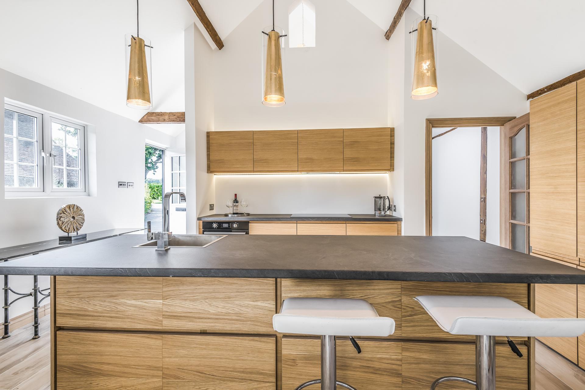 Superb open plan kitchen/lounge with a luxury fitted modern kitchen benefiting from solid oak cabinets. The kitchen includes a single oven and large electric hob, integral dishwasher and fridge/freezer. Opening on to a fantastic dining and living space overlooking the lake.