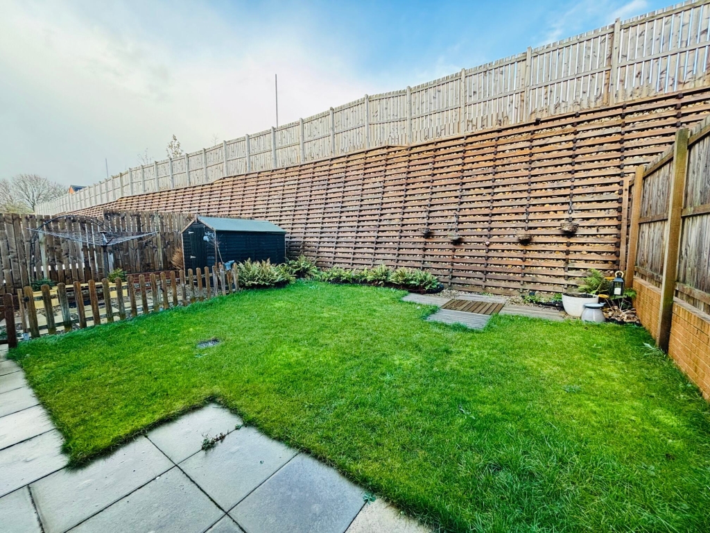 The fitted kitchen is a real highlight, featuring a dining area and patio doors that open onto an enclosed rear garden with a striking feature retaining wall. A stylish family bathroom with shower over bath, a separate utility room and a convenient ground floor WC add to the home's appeal.