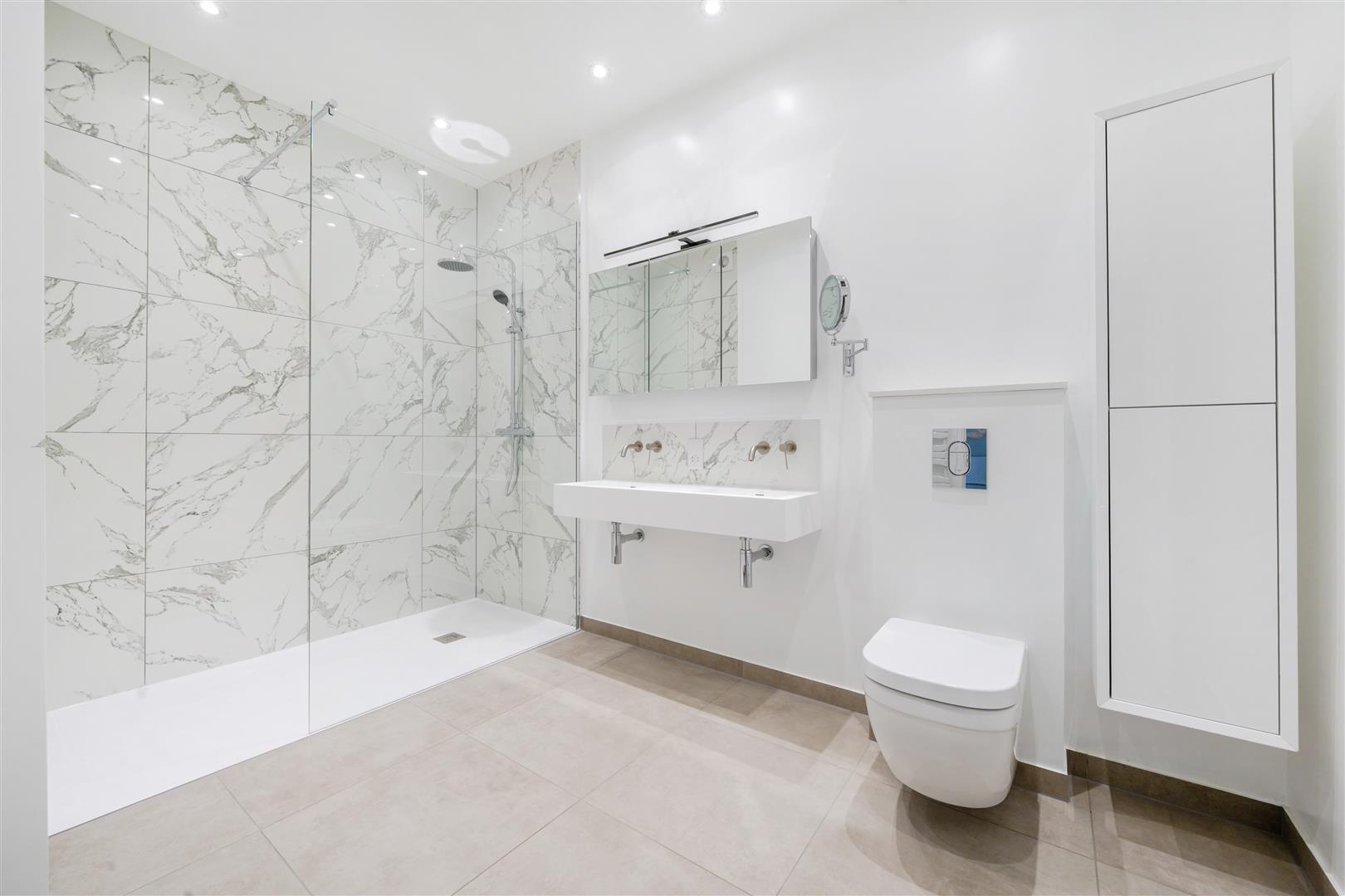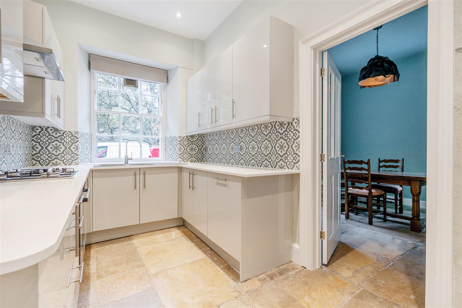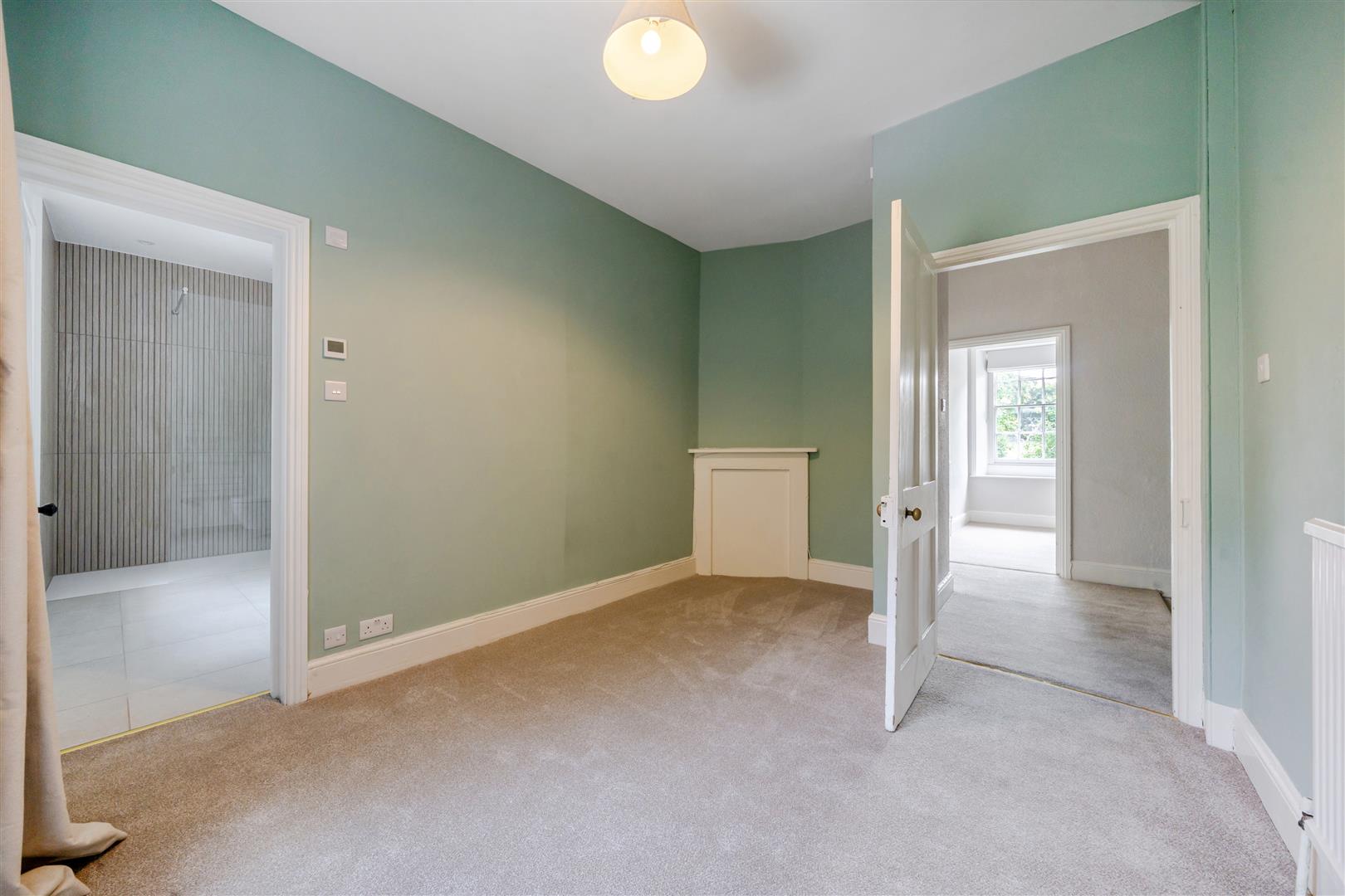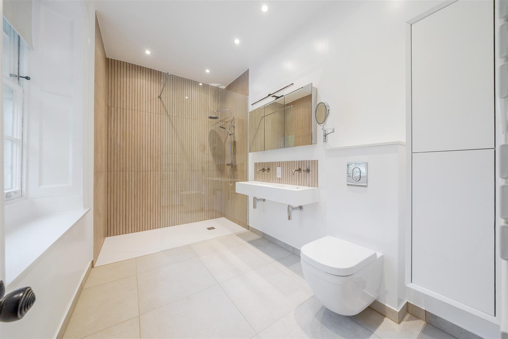 Upstairs, the property boasts four bedrooms, each filled with natural light. Two of the bedrooms benefit from views of the garden and modern en-suite shower rooms with large walk-in showers, while a third features a charming traditional fireplace. A beautifully appointed family bathroom with another walk-in shower completes the upstairs accommodation.