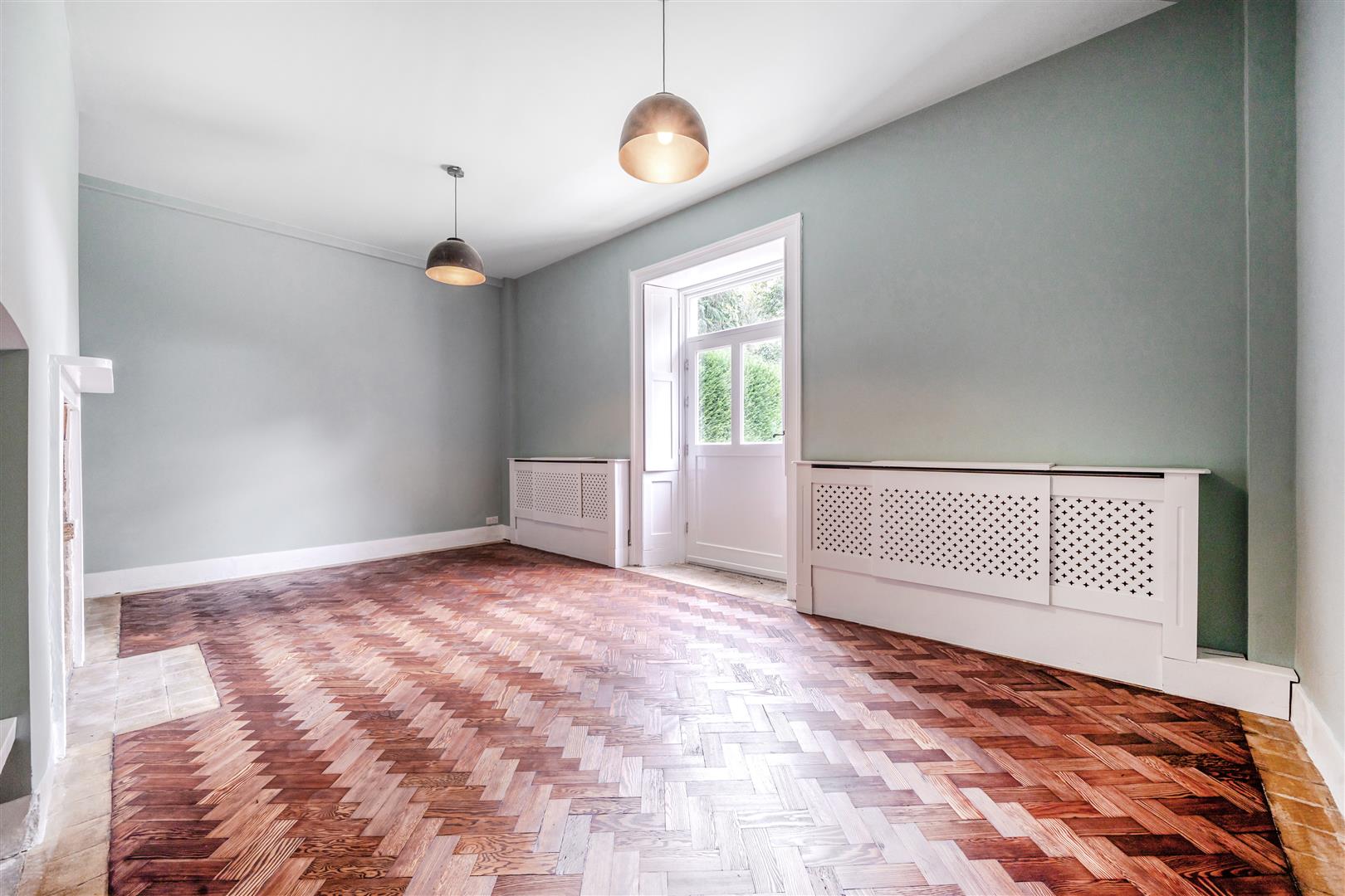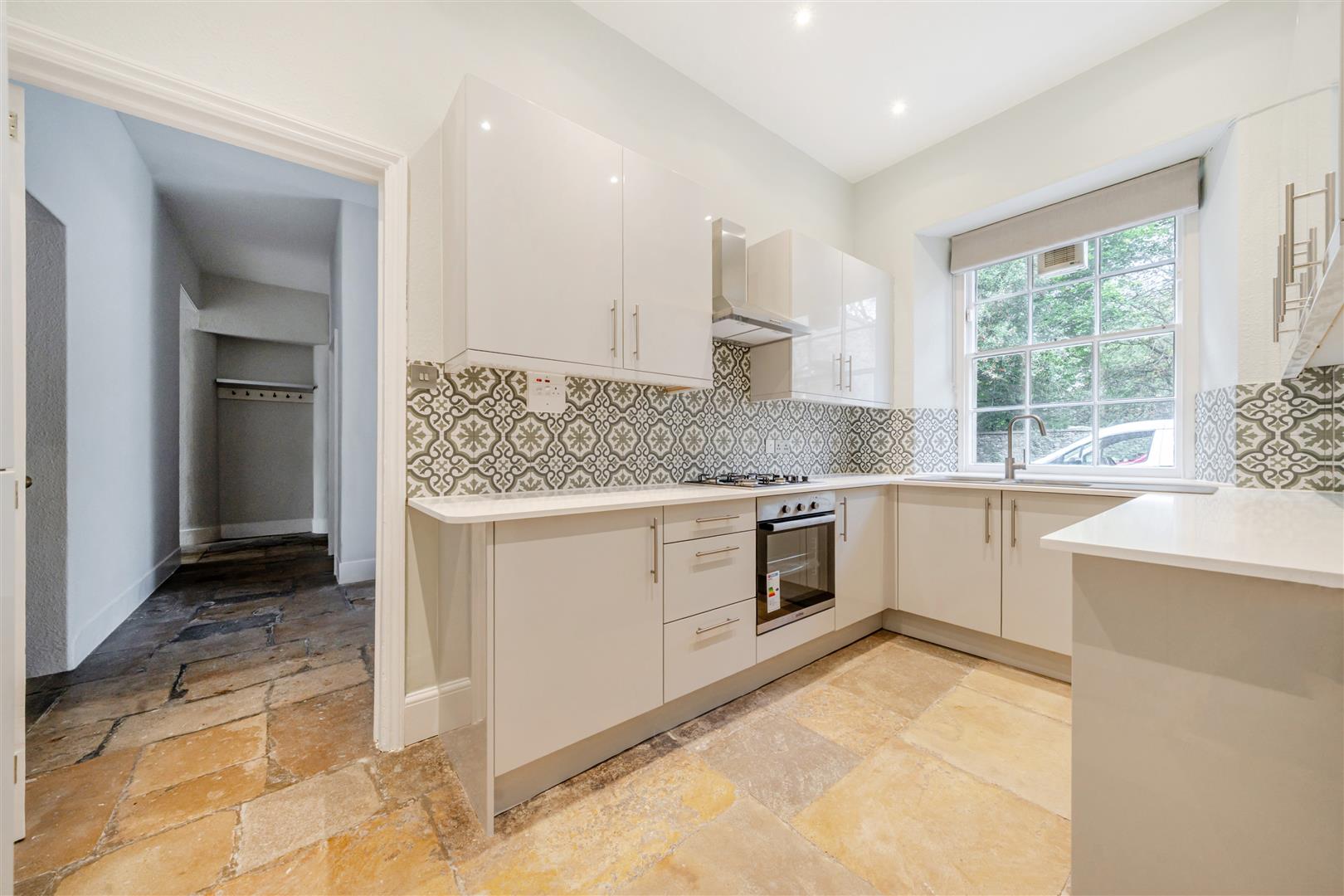 To the opposite side of the hallway, you'll find a contemporary kitchen complete with integrated fridge freezer and stylishly tiled splashbacks. The kitchen flows seamlessly into a dining area, which in turn opens into a spacious living room with original parquet flooring and fireplace, and direct access to the garden.