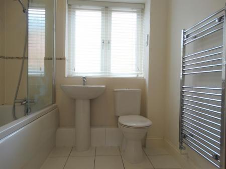 - Bathroom with modern white suite, shower over bath