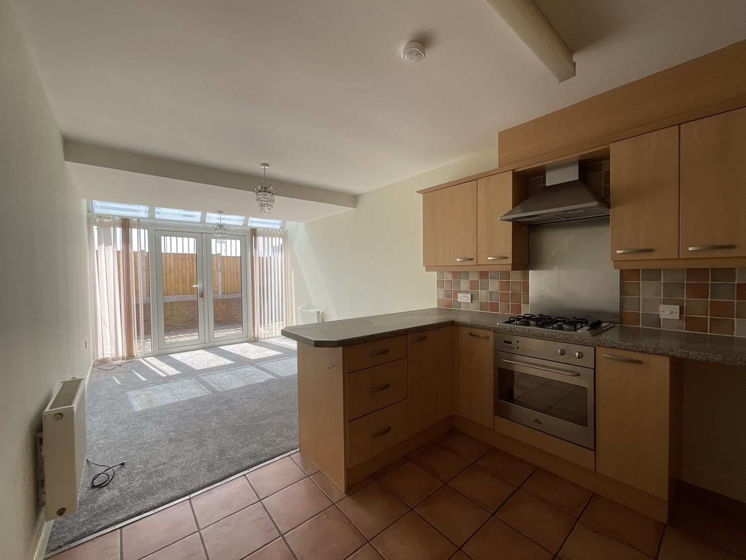 - Living room, open plan to kitchen with French doors leading to courtyard garden