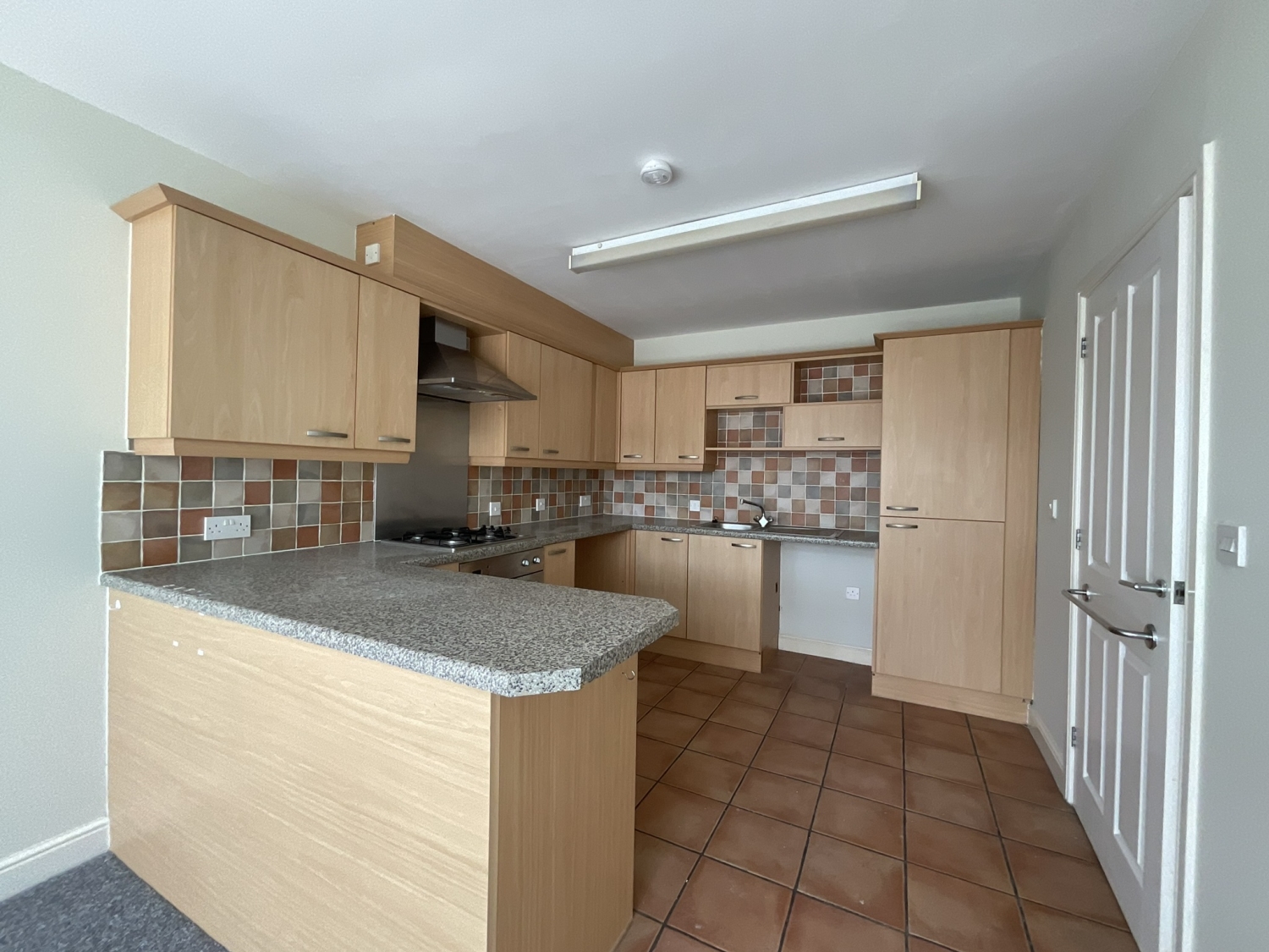 - Integrated electric oven, gas hob, cooker hood and fridge freezer. With space for washing machine/dishwasher