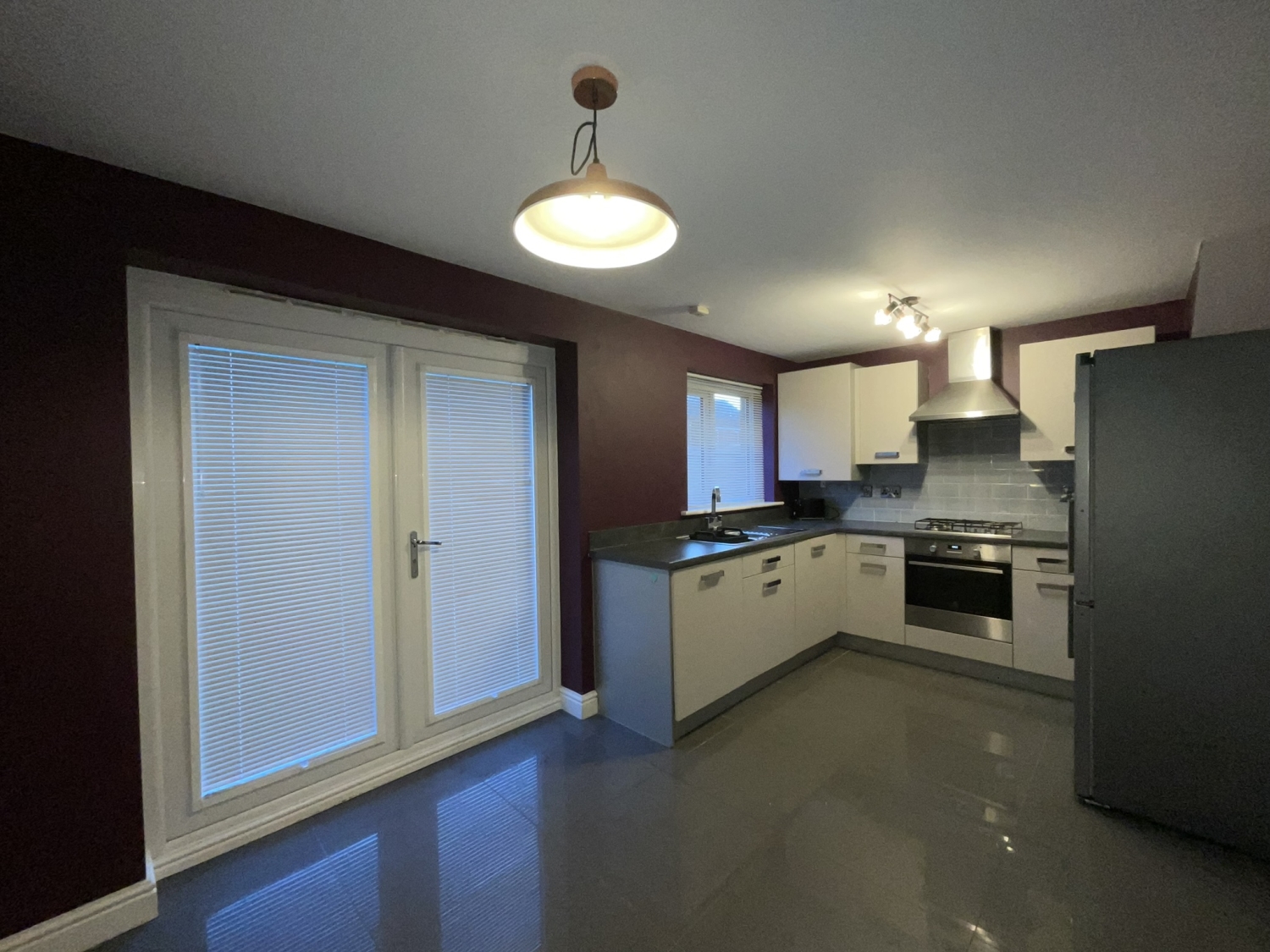 - Kitchen/dining room with French door leading to garden and underfloor heating
