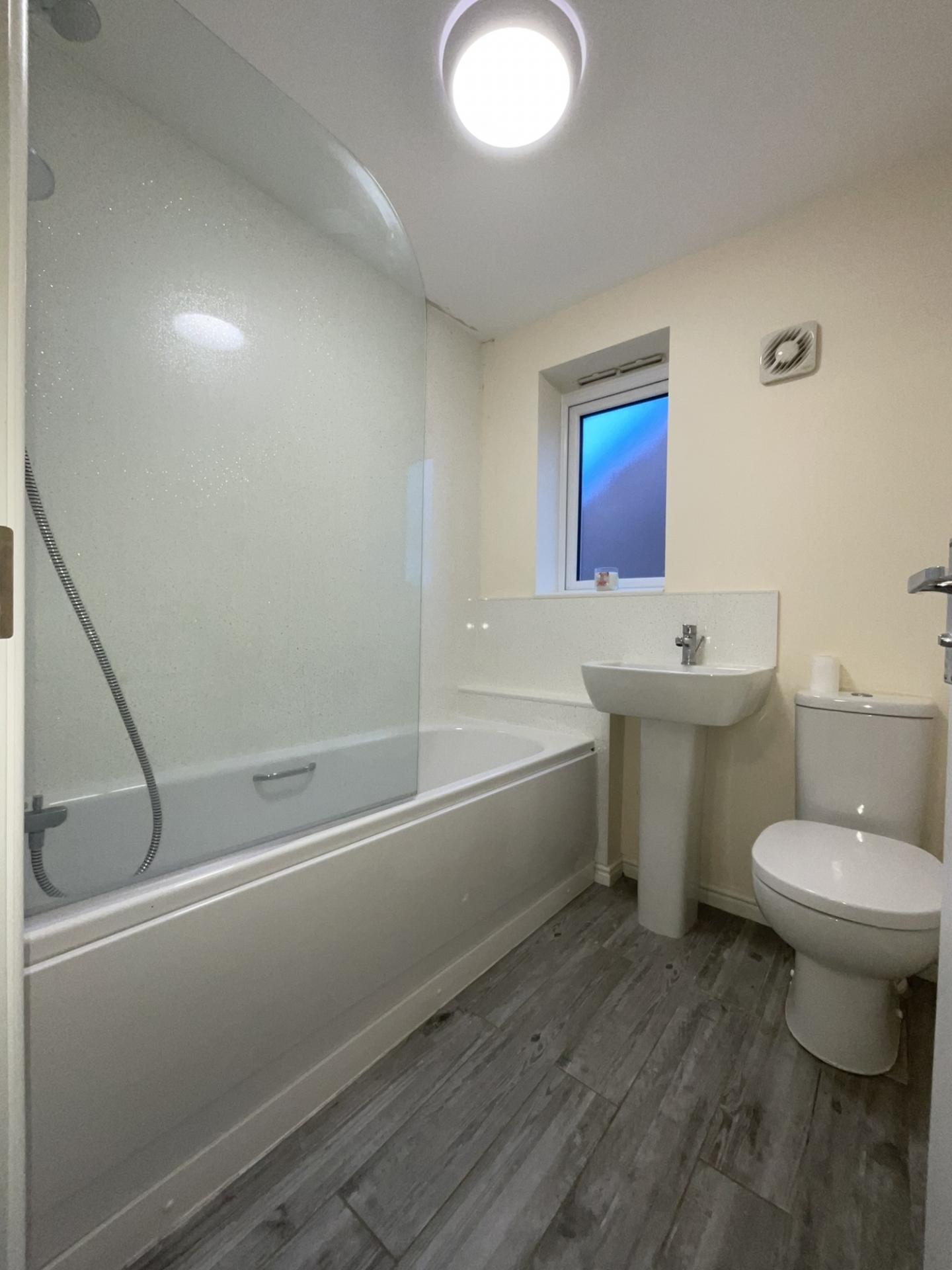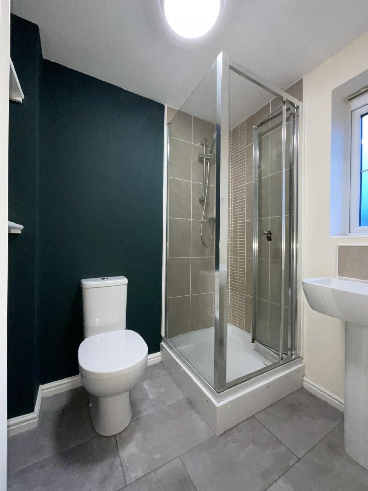 - Modern bathroom with mains shower off bath taps
